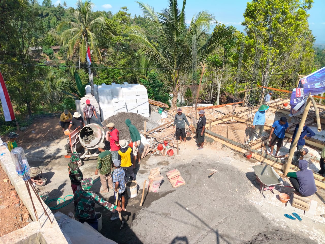 “Alhamdulillah, proses awal sudah berjalan lancar. Saat ini kami mulai melaksanakan pengecoran tiang sebagai bagian dari struktur utama bangunan,” ujar Lettu Inf Jaimin selaku Perwira Koordinator Rehab Musholla.