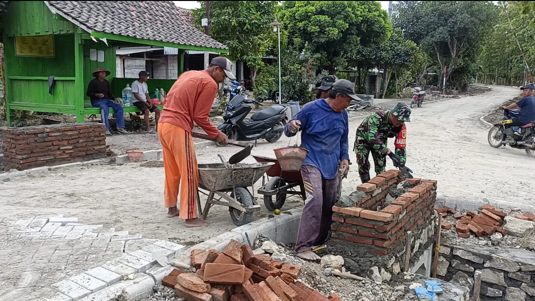 Untuk itu Sertu Jojon Babinsa Desa Mojo Koramil 14/Bringin Kodim 0805/Ngawi melaksanakan giat Karya Bhakti pembuatab gapura di Desa Mojo Kecamatan Bringin, Senin (04/08/2025).