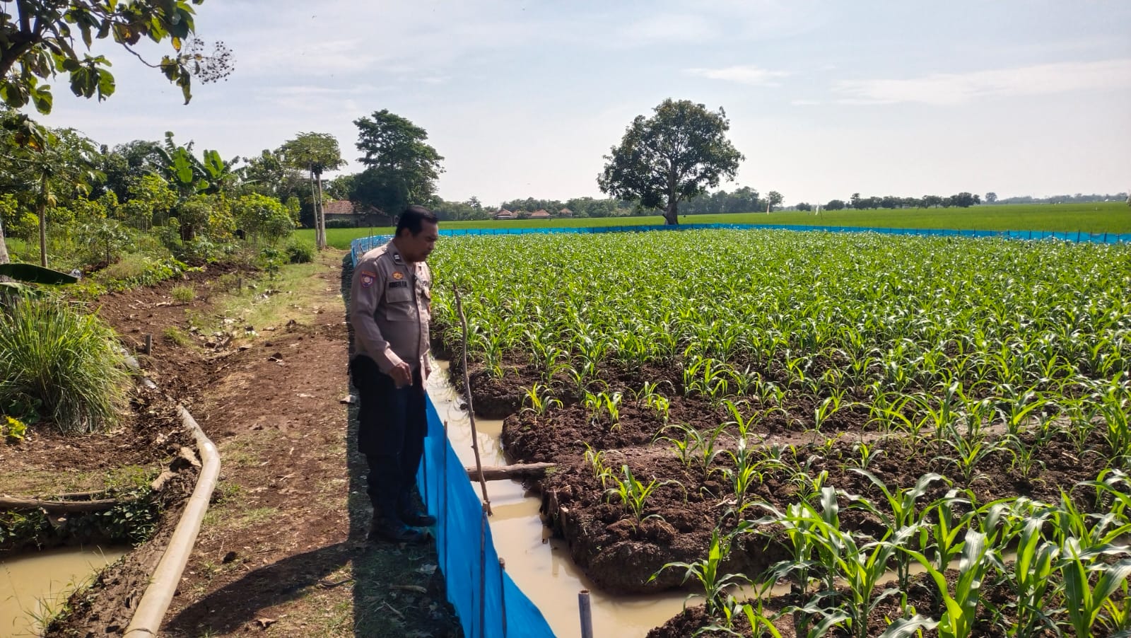 Indramayu – Bhabinkamtibmas Polsek Gabuswetan, Polres Indramayu AIPTU Rudiyanto melakukan pemantauan program ketahanan pangan bergizi di perkebunan jagung milik di Desa Kedokangabus, Kecamatan Gabuswetan, Kabupaten Indramayu, Senin (4/8/2025).