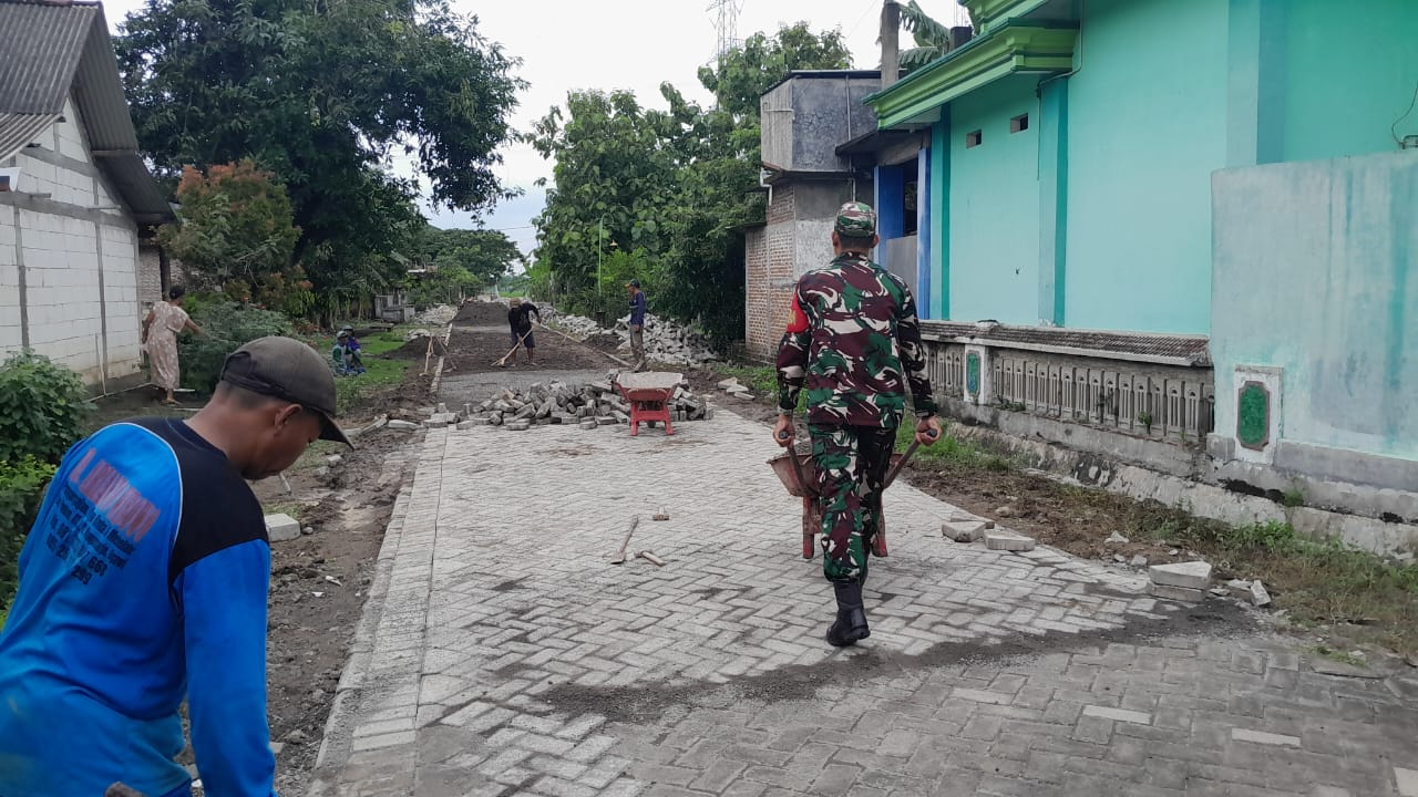 TNI Manunggal Bersama Rakyat, Babinsa Koramil 01/Ngawi Gotong Royong Bangun Jalan Paving