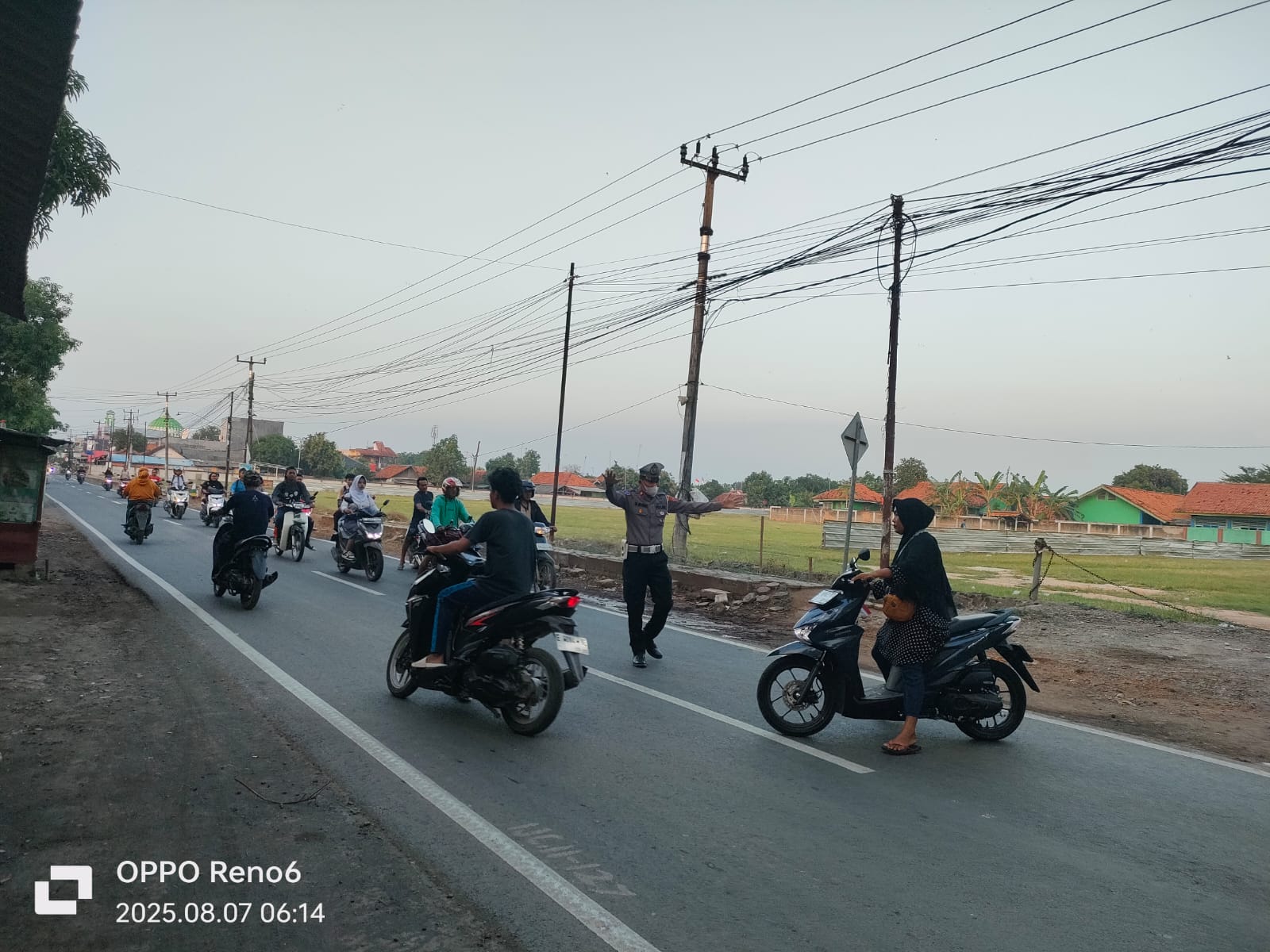 Indramayu – Guna memberikan rasa aman dan nyaman bagi masyarakat pengguna jalan, personel Polsek Terisi Polres Indramayu Polda Jabar melaksanakan pengaturan lalu lintas (gatur lalin) pagi hari di wilayah Kecamatan Terisi, Kabupaten Indramayu, Kamis (7/8/2025).