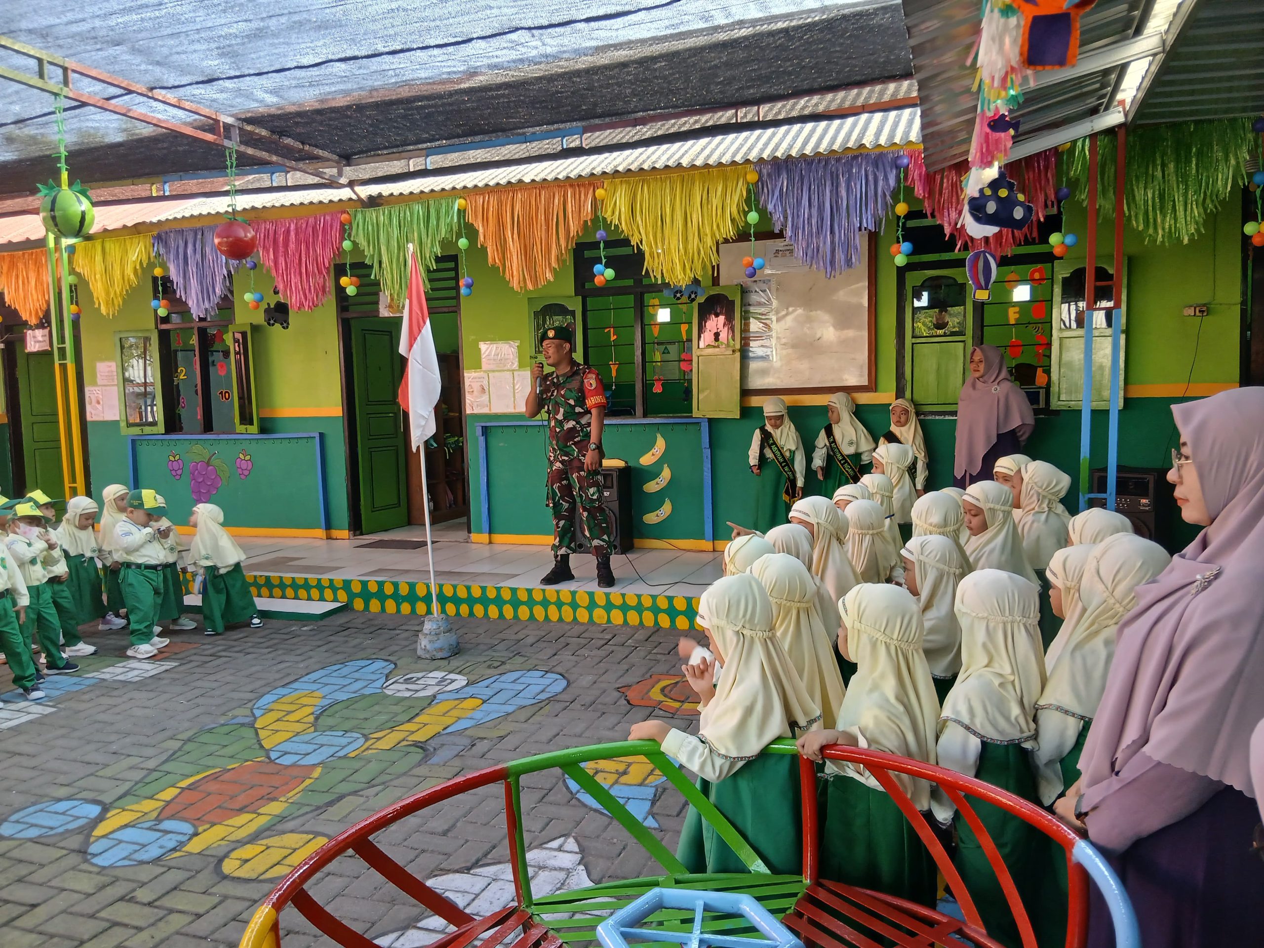Sementara itu pihak sekolah yang diwakili Kepala Sekolah Ibu Sulastri S.Pd juga menyambut baik dan sangat mengapresiasi Koramil 01 Ngawi khususnya Babinsa karena mau turun langsung memberi motivasi kepada pelajar khususnya kepada siswa-siswi TK Aisiyah II.