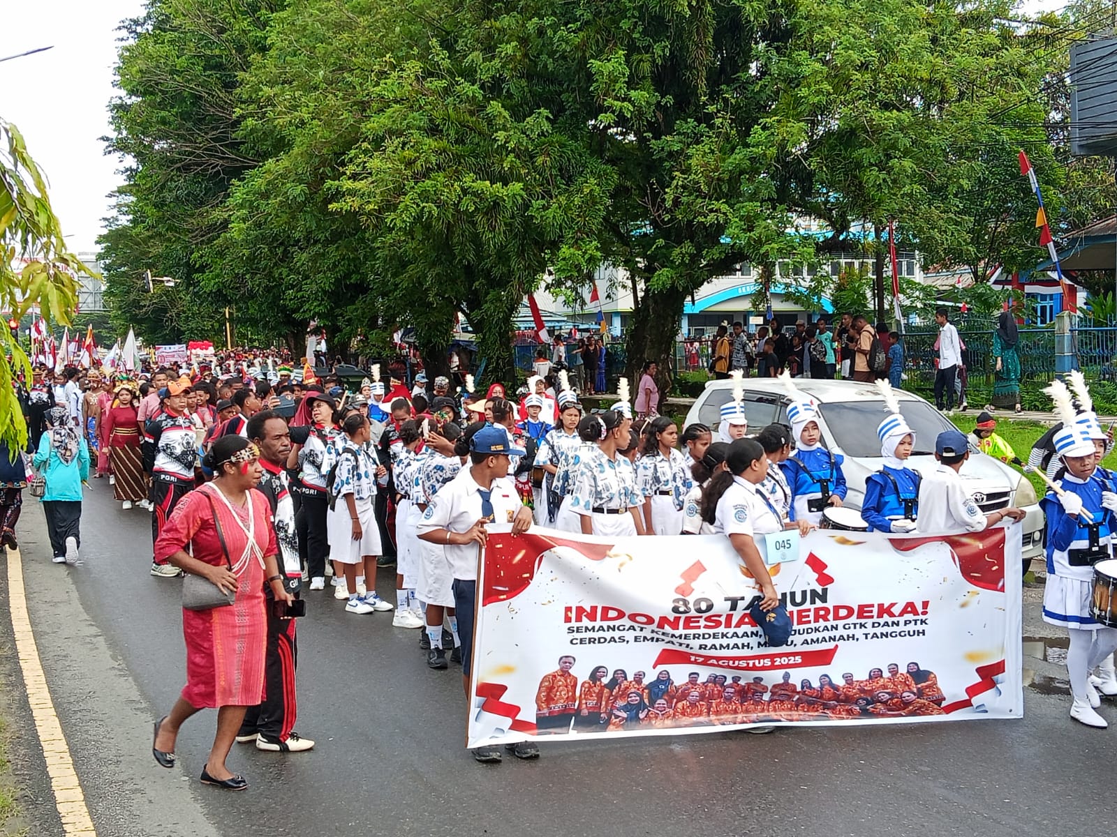 “Apa yang kita lakukan hari ini, walau hanya berjalan kaki sejauh 5 km dan diguyur hujan, tidak sebanding dengan perjuangan para pahlawan kita. Mari kita isi kemerdekaan ini dengan kerja keras, persatuan, dan semangat membangun daerah kita,” kata Gubernur.
