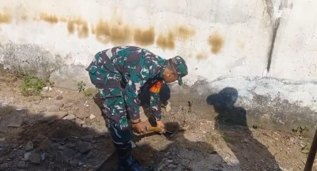 “ Alhamdulillah hari ini kami bersama Ibu Ngadiyem salah satu warga Dusun Tampo Desa Trisono yang kebetulan sedang membangun rumah pada taraf penggalian pondasi, sehingga disamping silaturahmi juga turut membantu menggali tanah, “ ujar Serda Agung Jujuk.