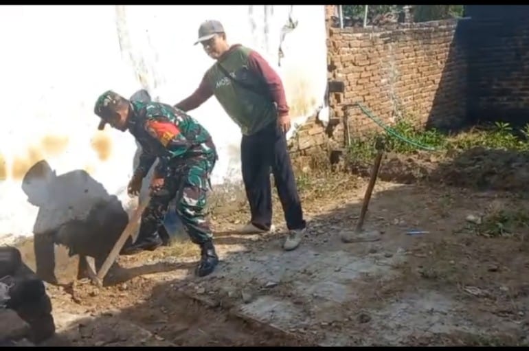 “ Alhamdulillah hari ini kami bersama Ibu Ngadiyem salah satu warga Dusun Tampo Desa Trisono yang kebetulan sedang membangun rumah pada taraf penggalian pondasi, sehingga disamping silaturahmi juga turut membantu menggali tanah, “ ujar Serda Agung Jujuk.