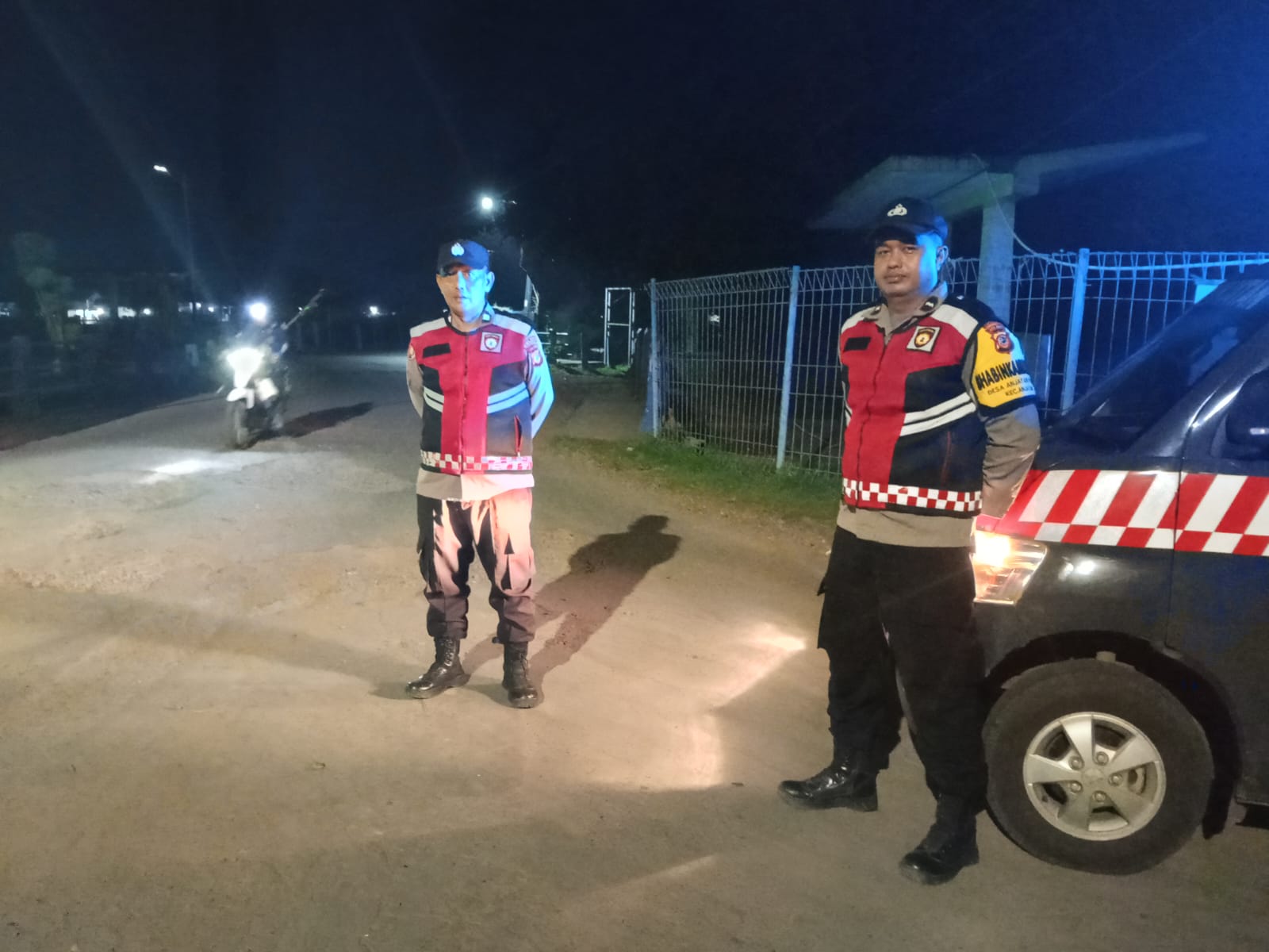 Dua personel kepolisian tampak melakukan pengawasan dan menyampaikan imbauan kepada masyarakat serta pengguna jalan untuk tetap waspada terhadap potensi tindak kejahatan, khususnya C3 (Curat, Curas, dan Curanmor).