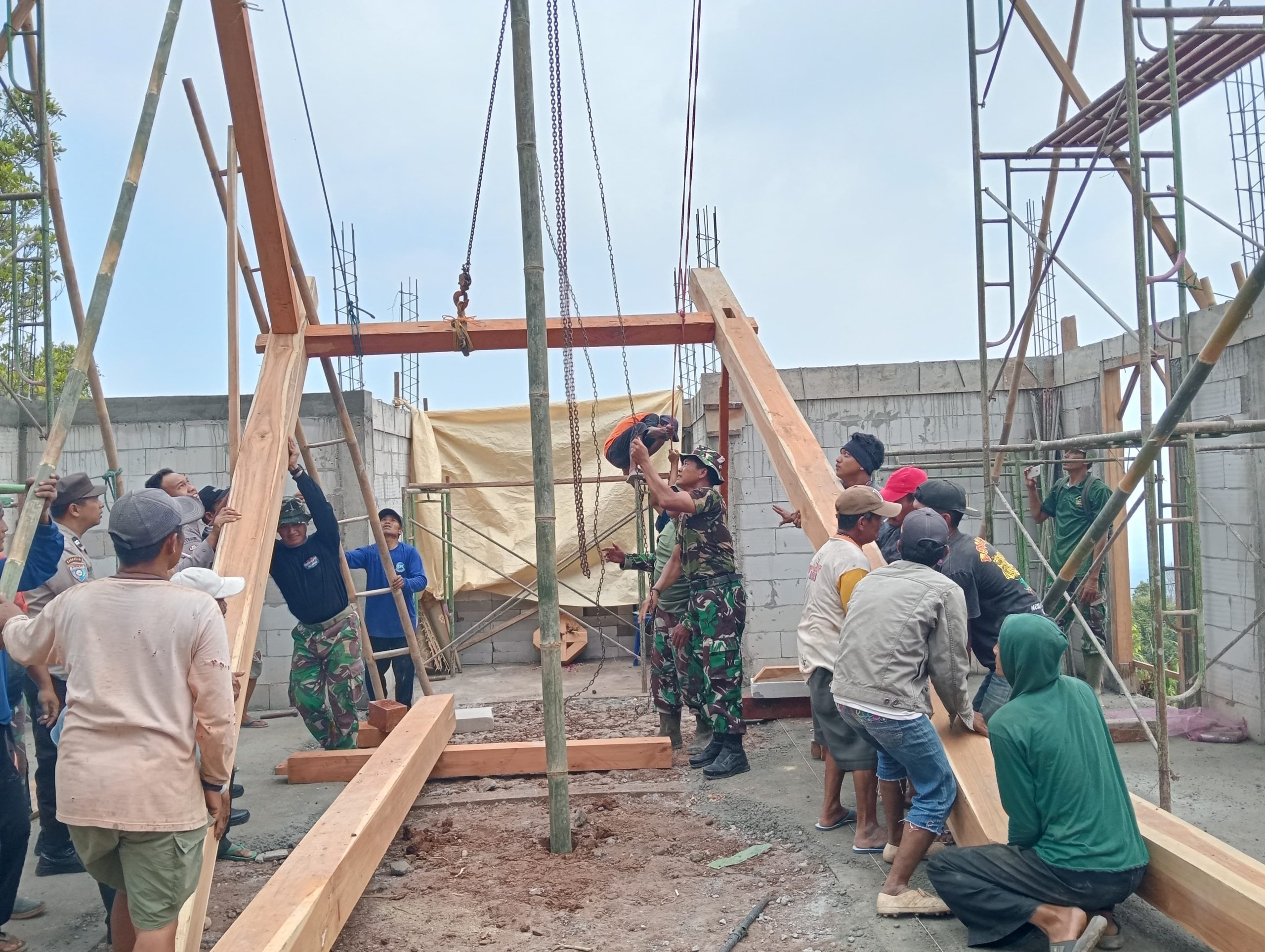 Bagi Satgas TMMD dan warga, soko guru ini bukan sekadar tiang. Ia adalah simbol penopang harapan, tempat doa-doa akan berkumandang, ayat-ayat suci dilantunkan, dan persaudaraan dipupuk. Semangat gotong royong yang terpancar hari itu menjadi gambaran nyata bahwa kekuatan bersama mampu menegakkan bukan hanya bangunan, tapi juga rasa persatuan.