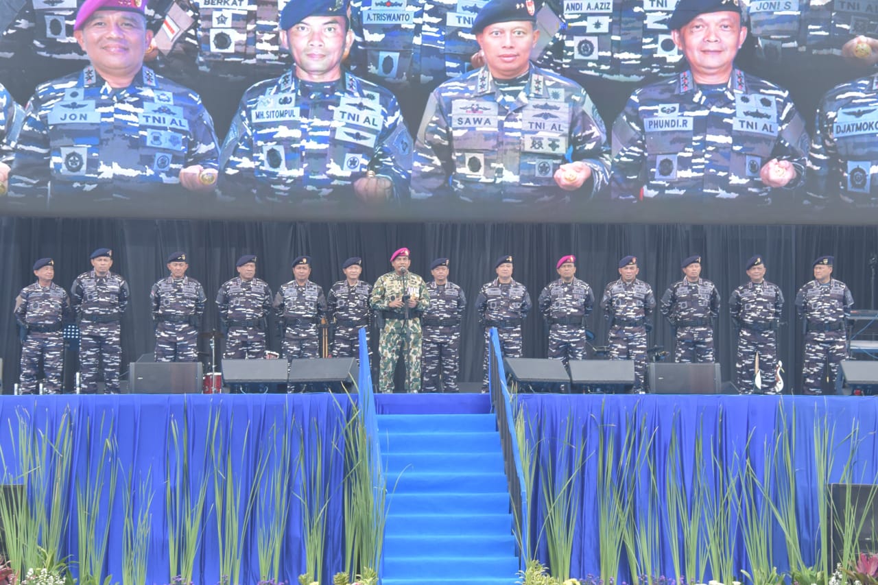 Pada kesempatan tersebut, Kasal secara simbolis menyerahkan kendaraan operasional kepada Pangkormar sebagai wujud dukungan penuh terhadap kesiapan pasukan. Dengan semangat kebersamaan, acara diakhiri prosesi pemotongan tumpeng sebagai tanda syukur atas perjalanan baru Korps Marinir yang kini semakin kuat, modern, dan siap menjadi garda terdepan pertahanan laut Indonesia.