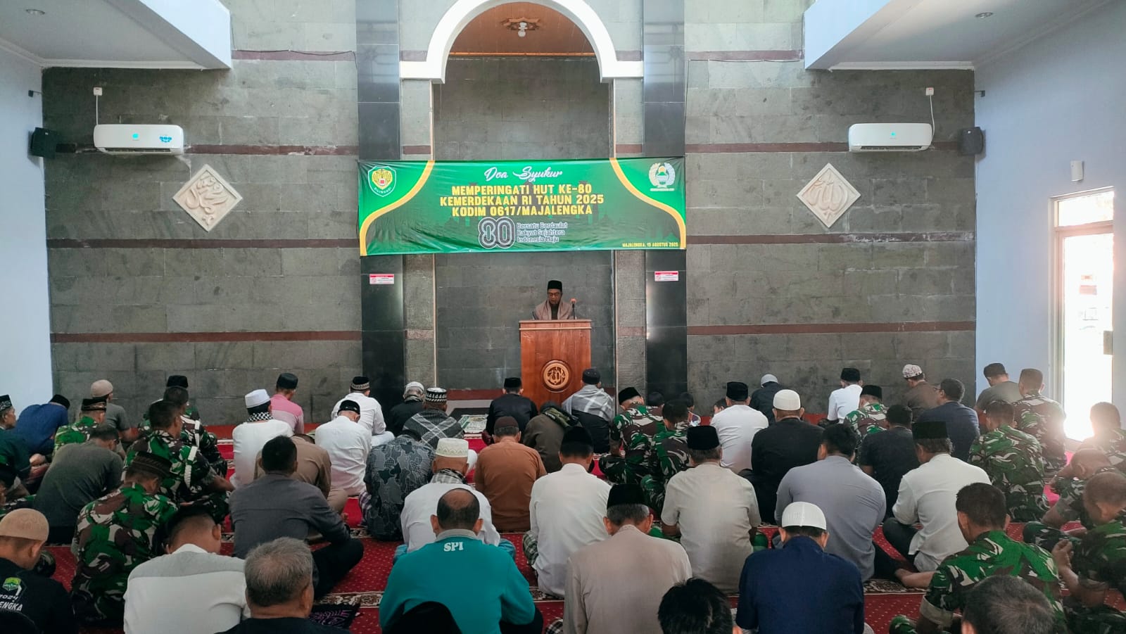 Kegiatan ini berlangsung di Masjid Al Ikhlas Kodim 0617/Majalengka, Jl. KH Abdul Halim No.403, Kelurahan Tonjong, Kecamatan/Kabupaten Majalengka, Jumat (15/8/2025).