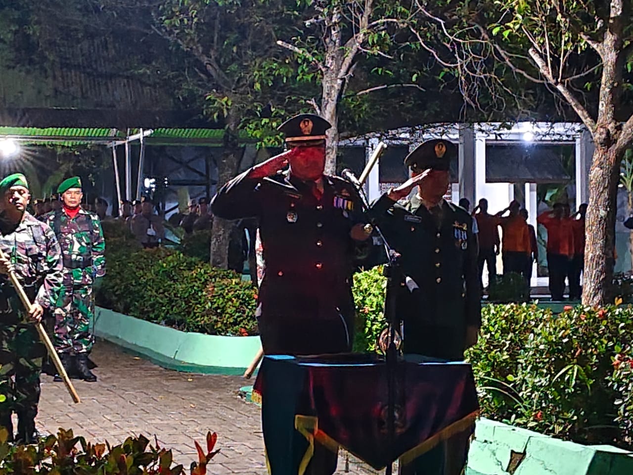 Suasana hening menyelimuti TMP saat para peserta menundukkan kepala dalam doa dan renungan. Upacara ditutup dengan penyalaan obor dan pembacaan naskah renungan suci sebagai simbol semangat perjuangan yang tak pernah padam.