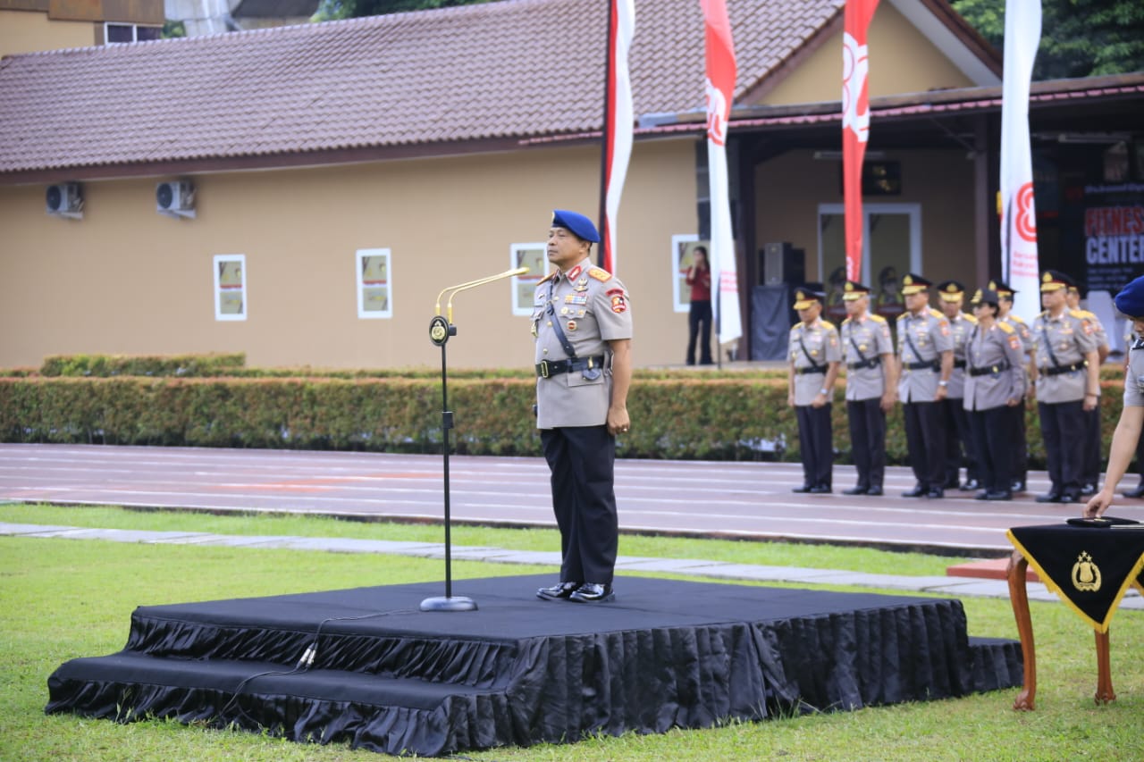 Dengan mengangkat tema “Dengan Semangat Juang Polri untuk Masyarakat Menuju Indonesia Maju”, upacara dimulai dengan penghormatan pasukan, laporan komandan upacara, pembacaan sejarah singkat Polri, hingga pembacaan teks Proklamasi Polisi oleh Irjen Pol Ramdani Hidayat selaku inspektur upacara.