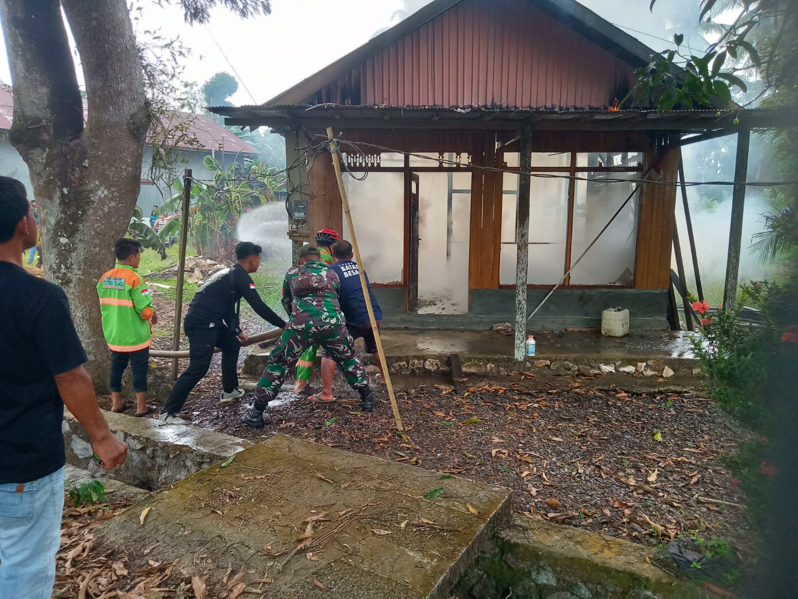 Kebakaran di HST, Koramil 1002-04/LAS Bersama Petugas Gabungan Padamkan Api