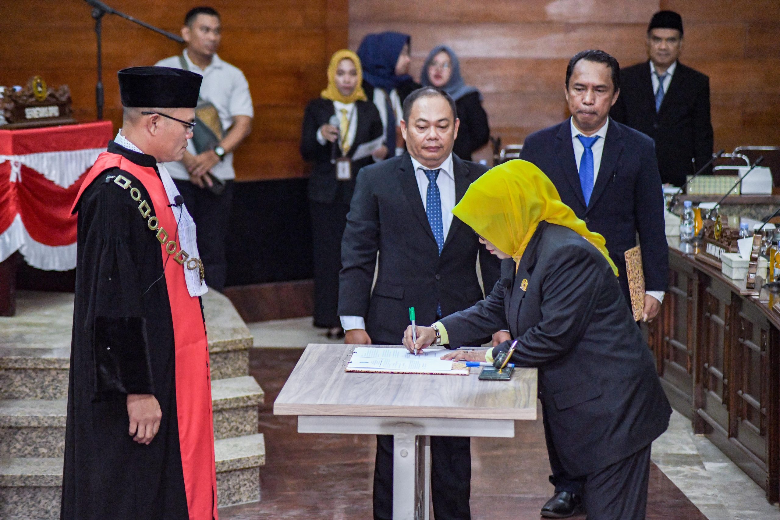 Dalam sambutannya, Bupati Lucky Hakim menyampaikan apresiasi dan ucapan selamat kepada pimpinan dan anggota DPRD yang baru dilantik.