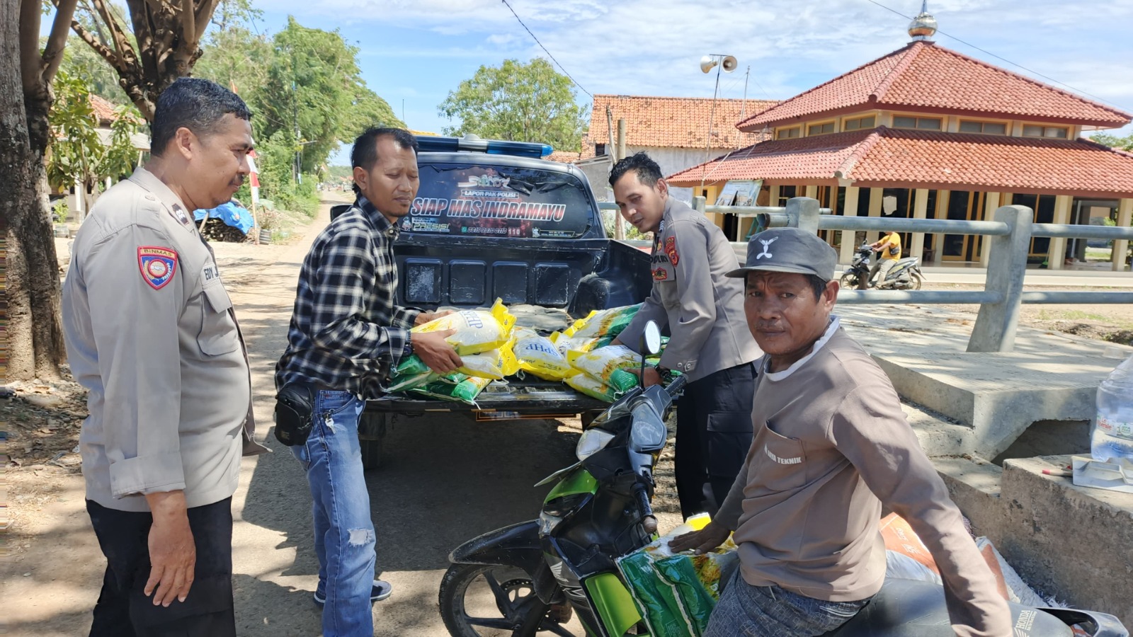Polsek Pasekan Gelar Gerakan Pangan Murah, Jualan Beras Keliling Desa Untuk Ringankan Beban Warga