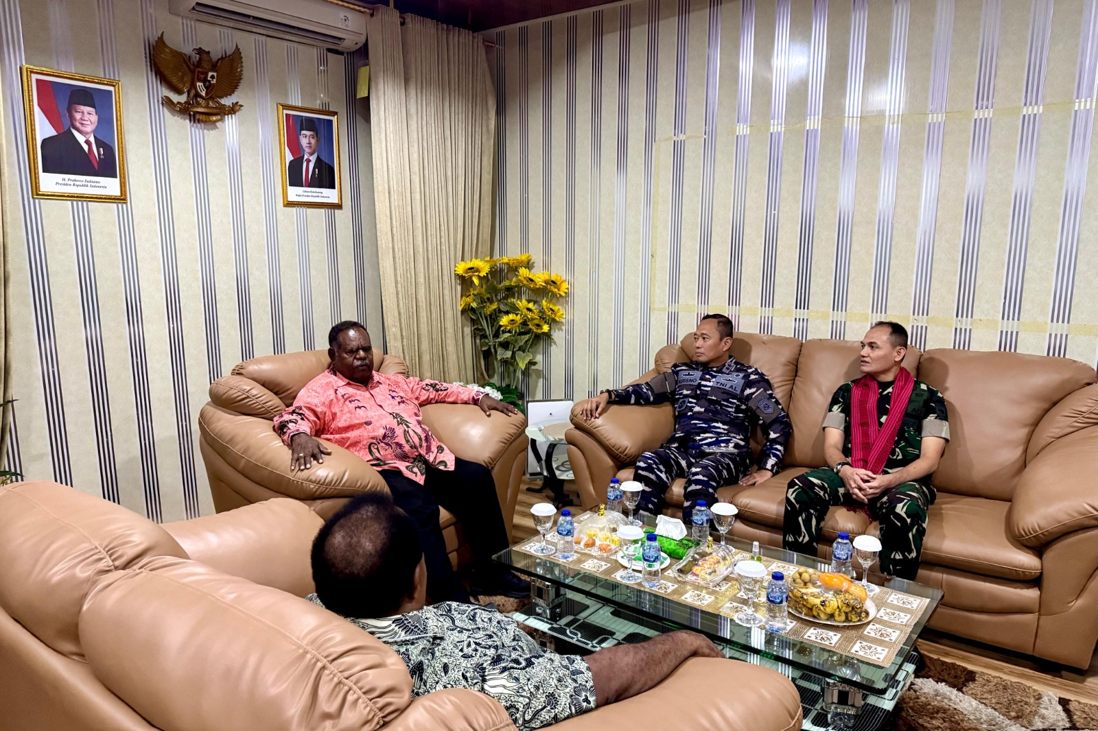 Penyambutan berlangsung hangat dan penuh keakraban, turut dihadiri Gubernur Papua Barat Daya Elisa Kambu, S.Sos., pejabat Forkopimda, serta jajaran TNI-Polri di wilayah Sorong.