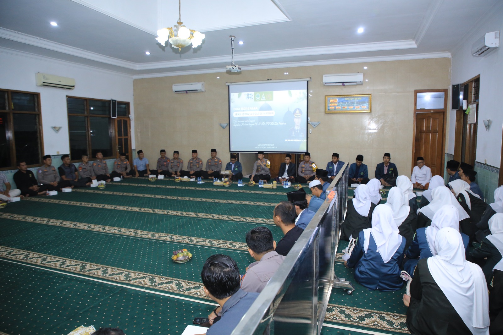 Madiun – Kapolres Madiun AKBP Kemas Indra Natanegara, S.H., S.I.K., M.Si. memimpin kegiatan doa bersama dengan Pengurus Cabang Ikatan Pelajar Nahdlatul Ulama (IPNU) dan Ikatan Pelajar Putri Nahdlatul Ulama (IPPNU) Kabupaten Madiun. Acara yang digelar di Masjid At-Taqwa Polres Madiun pada Sabtu (6/9/2025) malam ini dihadiri Pejabat Utama Polres Madiun, anggota Polri, serta puluhan pelajar NU.