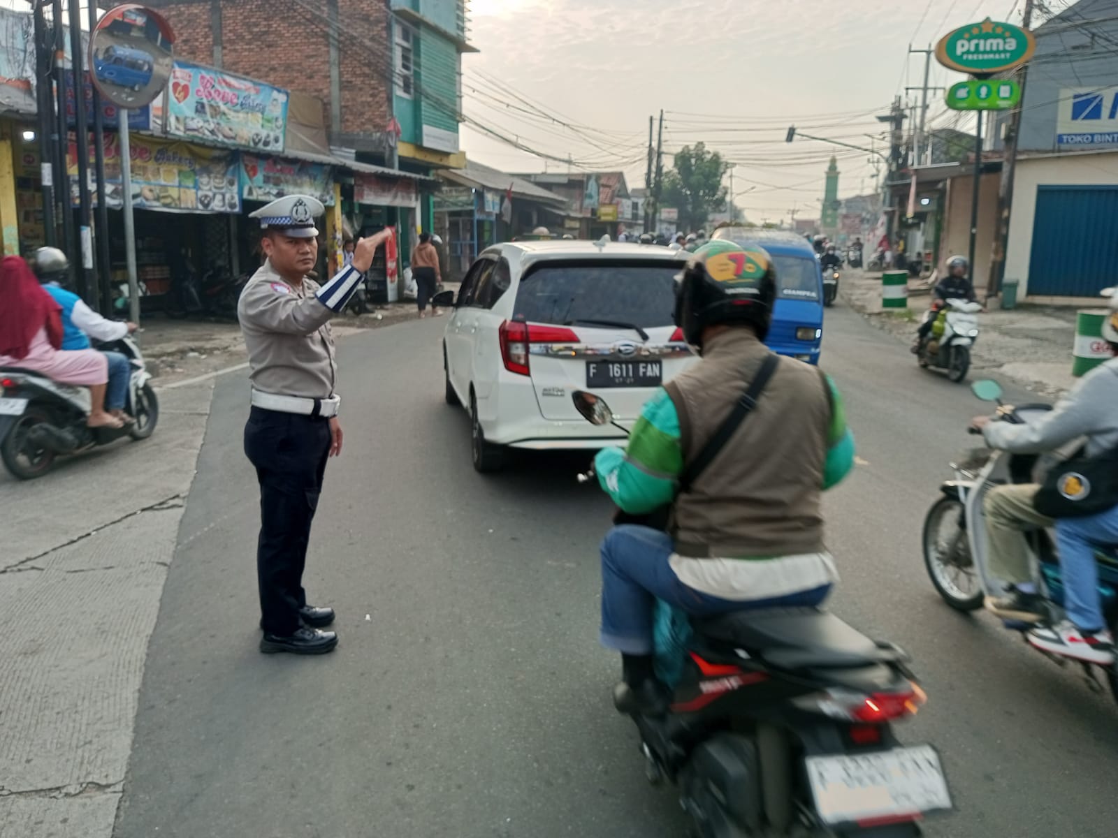 Anggota Polsek Ciampea Polres Bogor Laksanakan Pengaturan Lalu Lintas Pagi Hari