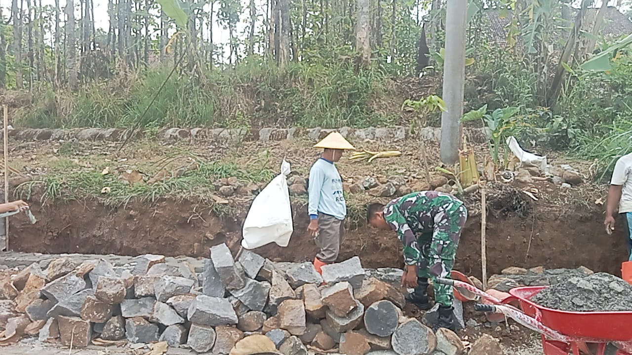 Menurut Babinsa saat ditemui di sela-sela kegiatannya bahwa dalam kegiatan karya bakti ini sebagai sarana binter di wilayah dalam membantu masyarakat pembuatan talud jalan sebagai penahan tanah agar tidak selalu longsor setiap musim hujan.