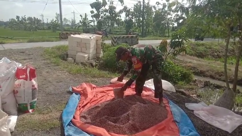 Tingkatkan Ketahanan Pangan, Babinsa Koramil Karanganyar Bantu Petani Memupuk Padi