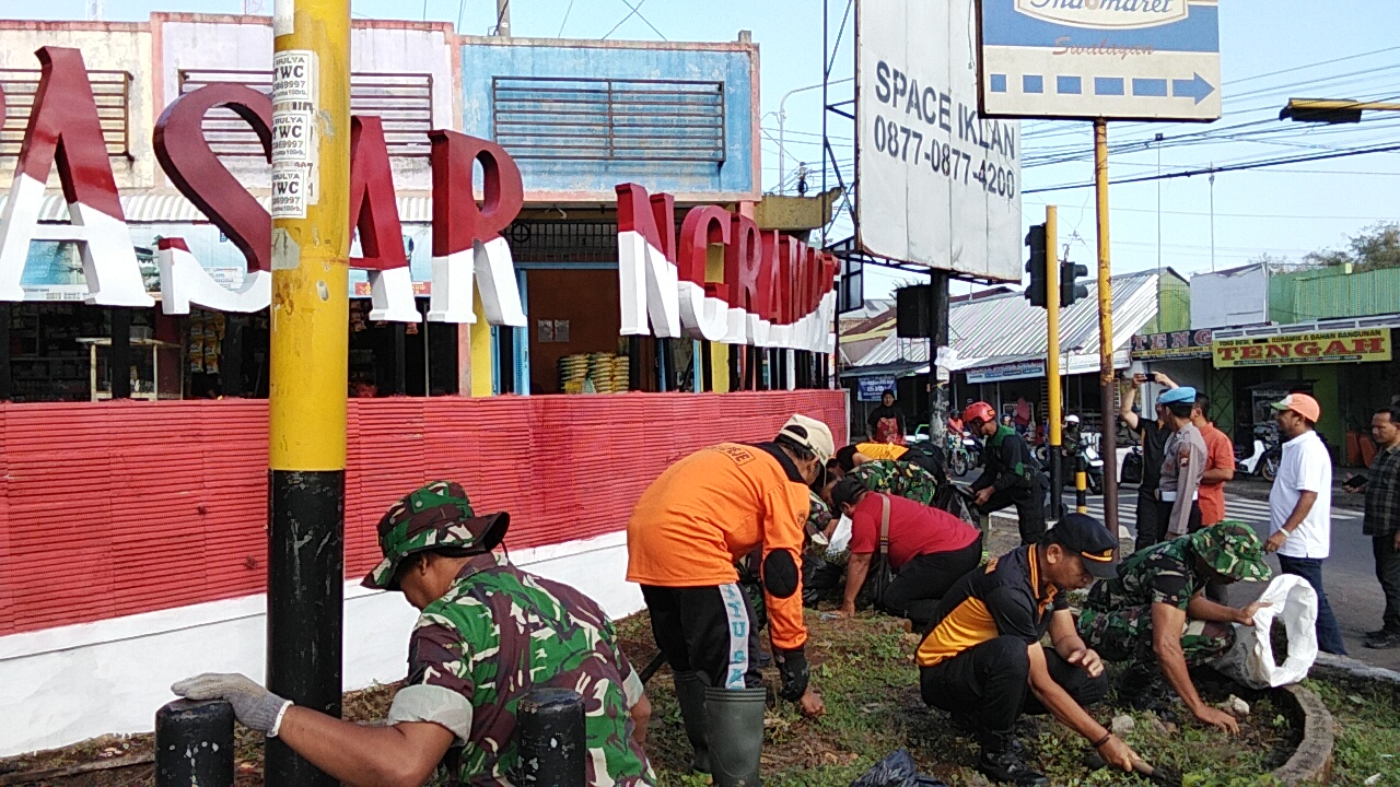 Dipimpin langsung oleh Danramil Ngrambe, Kapten Inf Parkuat, kegiatan ini melibatkan berbagai unsur, mulai dari aparat TNI, polri, perangkat kecamatan, hingga masyarakat sekitar. Turut hadir pula Camat Ngrambe, yang bersama-sama dengan warga bahu-membahu membersihkan area pasar dan sekitarnya.