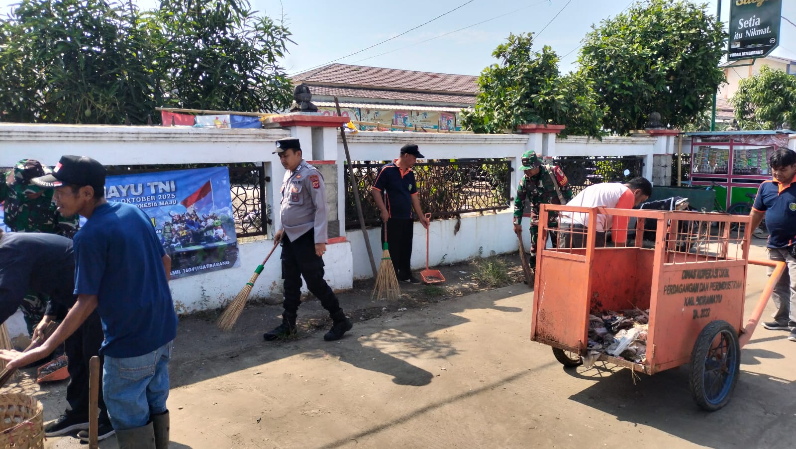 Indramayu – Sinergi TNI-Polri bersama pemerintah kecamatan Jatibarang kembali ditunjukkan melalui kegiatan karya bakti membersihkan Pasar Daerah Jatibarang, Desa Bulak, Kecamatan Jatibarang, Jumat (26/9/2025) kemarin.
