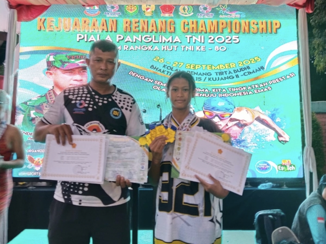 Majalengka – Prestasi membanggakan kembali diraih putri daerah Majalengka. Azzahro Axcerlyliavie Junaedi (12), putri dari Serda Junaedi anggota Koramil 1709/Rajagaluh, sukses menyabet gelar Best Swimmer pada Kejuaraan Renang Piala Panglima TNI yang digelar di Kolam Renang Tirta Budhi Brigif 15 Kujang, Bandung, pada 26–27 September 2025.