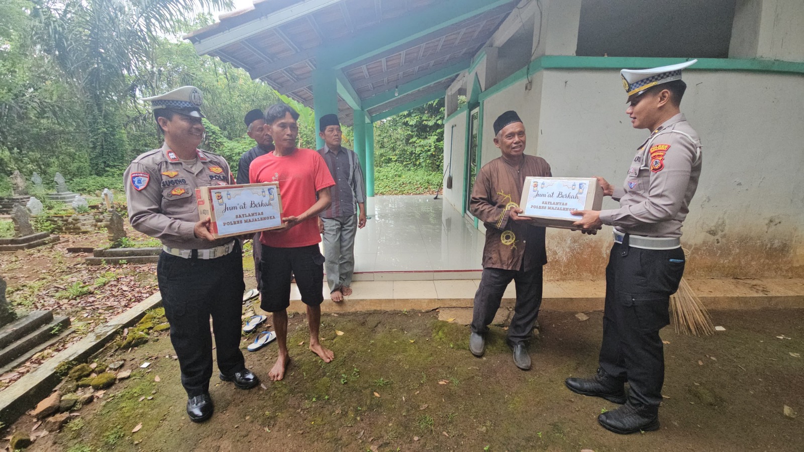 Majalengka – Dalam rangka mempererat silaturahmi sekaligus wujud kepedulian sosial terhadap masyarakat, Satuan Lalu Lintas (Satlantas) Polres Majalengka Polda Jabar melaksanakan kegiatan Jum’at Berkah dengan berbagi paket sembako kepada para penggali kubur di Makam Buyut Raksadipa, Desa Karayunan, Kecamatan Cigasong, Kabupaten Majalengka, pada Jumat (03/10/2025).