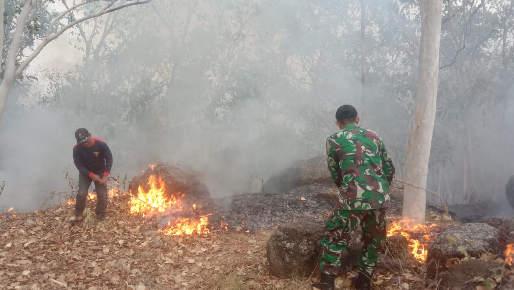 Saat itu juga petugas piket langsung menghubungi Serka Ali selaku Babinsa Tugurejo untuk bersama sama menindaklanjuti dengan langsung mendatangi dan meninjau ke lokasi kejadian kebakaran hutan tersebut.