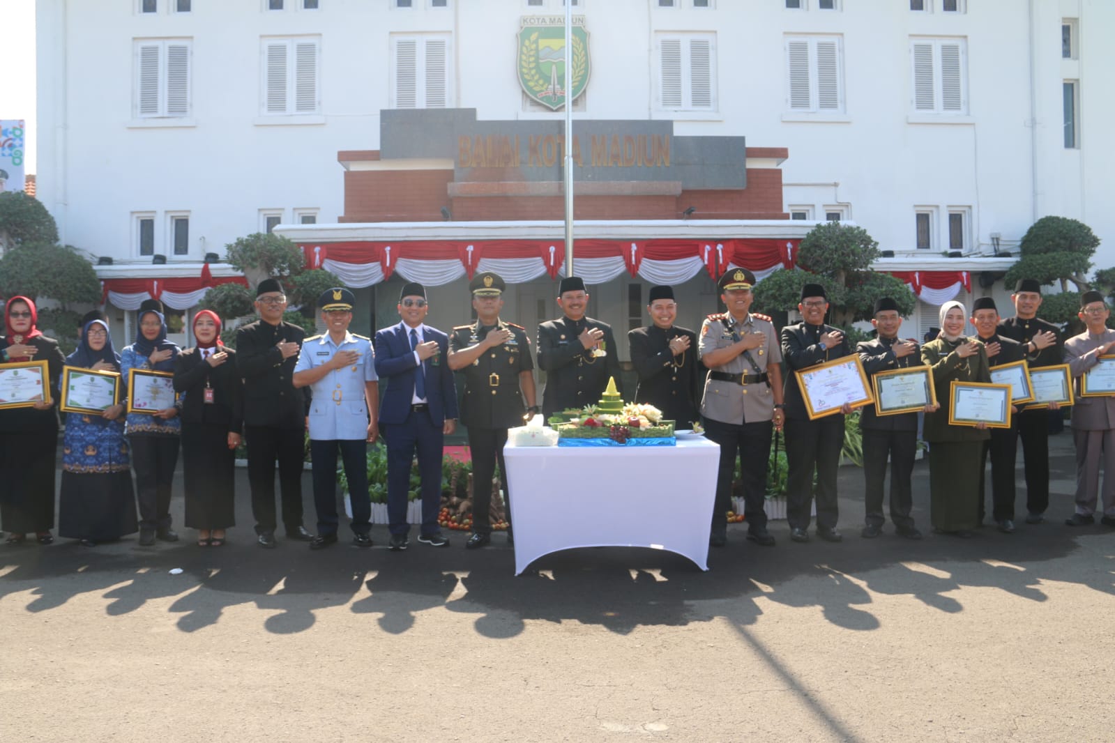 Suasana di halaman Balai Kota Madiun tampak meriah dan penuh kehangatan. Bendera-bendera berkibar, musik marching band turut mengiringi jalannya upacara, serta partisipasi masyarakat yang hadir menambah semarak peringatan hari bersejarah bagi Provinsi Jawa Timur tersebut.