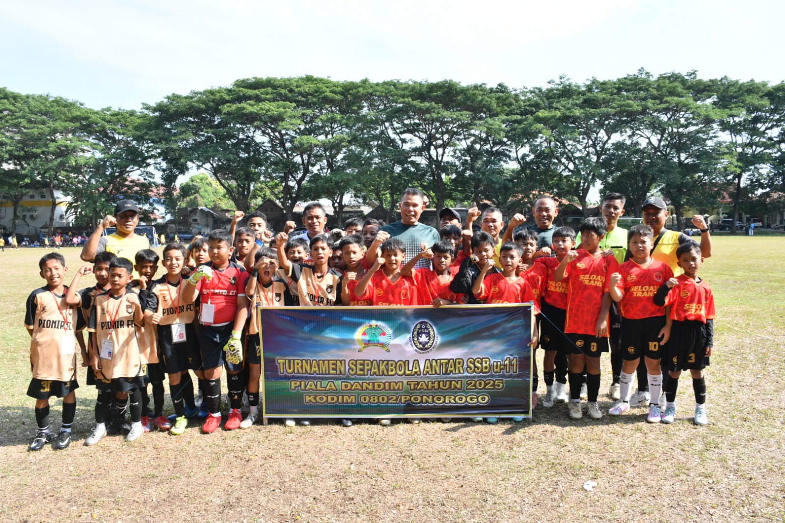 Turnamen SSB U-11 Piala Dandim Ponorogo yang digelar di Lapangan Merak Kodim 0802/Ponorogo dan diikuti oleh peserta turnamen sebanyak 16 tim SSB dan diibagi dalam empat group tersebut dalam rangka memperingati Hari Ulang Tahun (HUT) ke 80 Tentara Nasional Indonesia (TNI) tahun 2025.