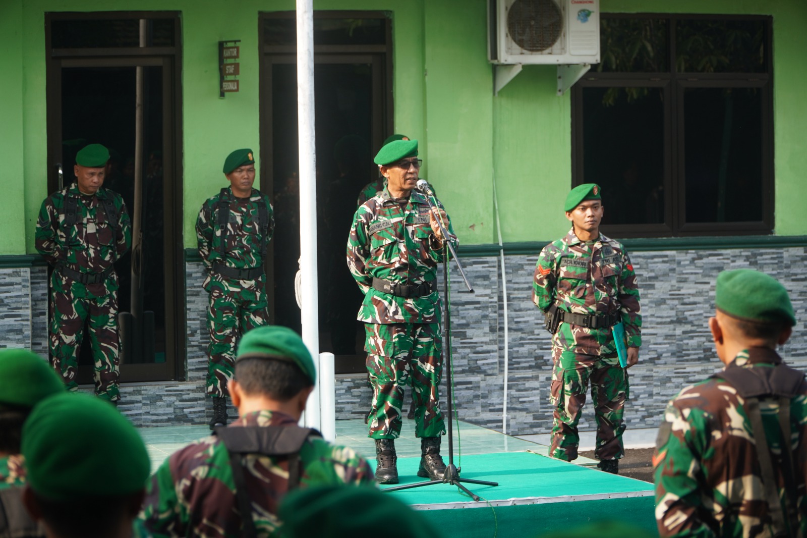 Dalam amanatnya, Mayor Kav Nanang Choirudin menekankan pentingnya menjaga disiplin, semangat kerja, serta meningkatkan rasa tanggung jawab dalam menjalankan tugas sehari-hari sebagai aparat teritorial.