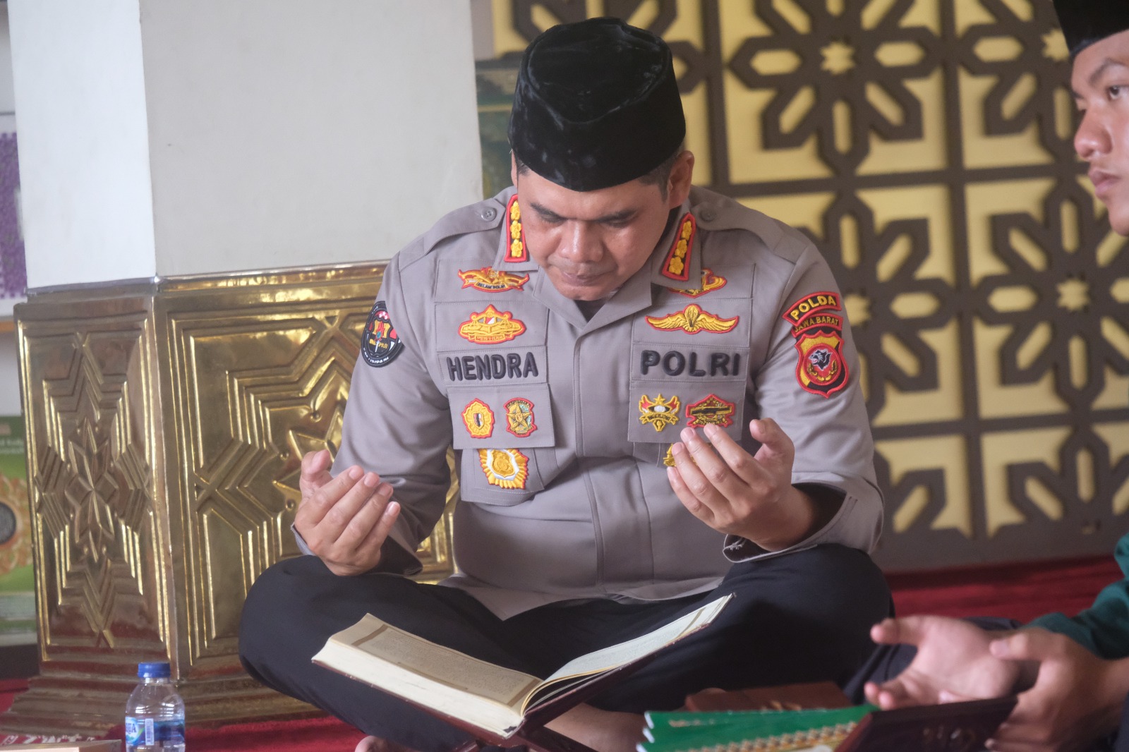 Rangkaian kegiatan tersebut meliputi Shalat Dhuha berjamaah, Khataman Al-Qur’an, pembacaan Shalawat Nariyah, serta doa bersama dengan para santri dari Yayasan Pondok Pesantren Ulul Albab Kota Bandung, yang digelar di Aula masjid Polda Jabar, Jumat (24/10/2025).