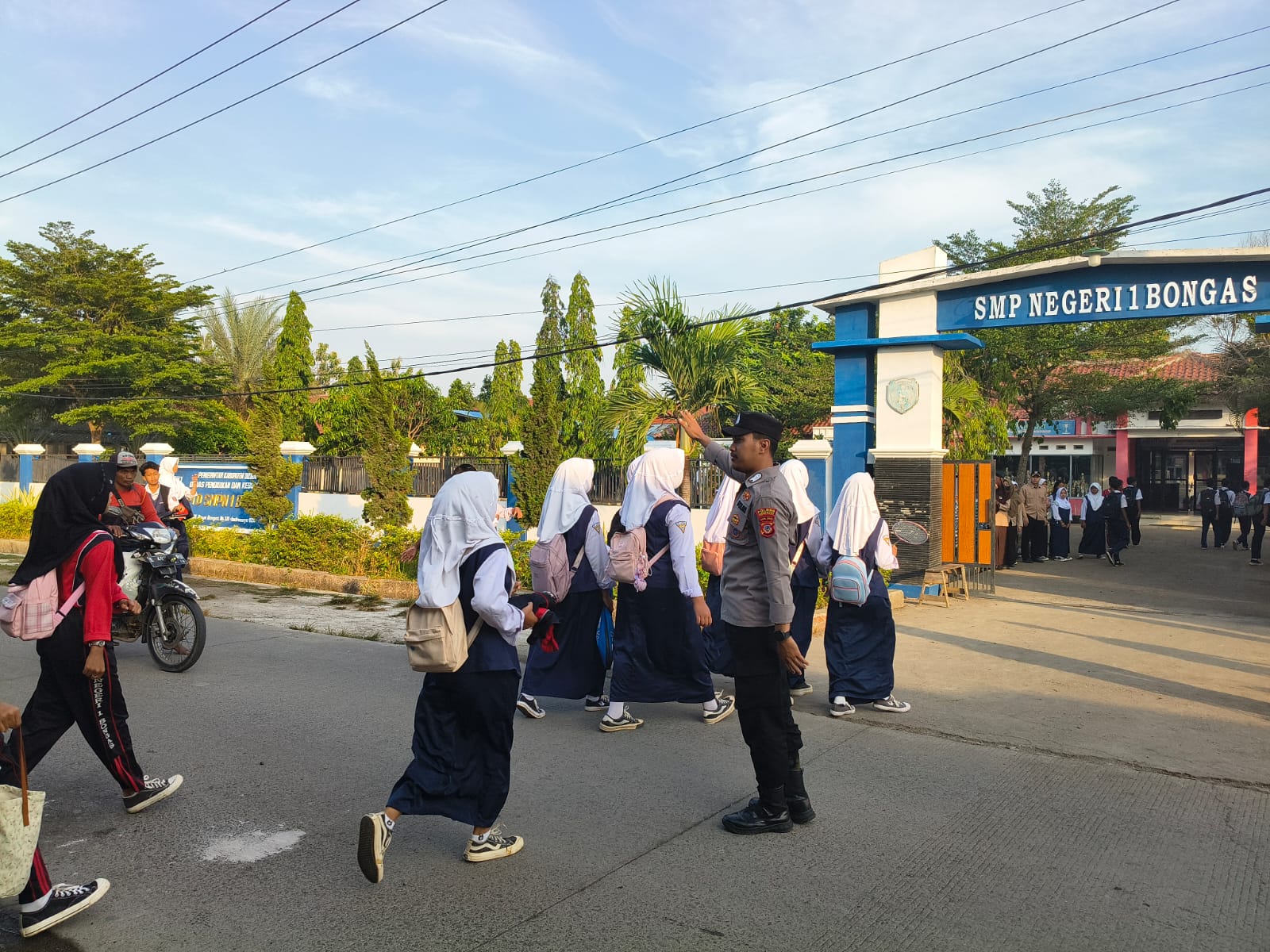 Kapolres Indramayu, AKBP Mochamad Fajar Gemilang, melalui Kapolsek Bongas IPTU Fahrudin, menyampaikan bahwa anggota Polsek Bongas secara konsisten melaksanakan tugas pengaturan arus lalu lintas dan membantu menyeberangkan anak-anak sekolah setiap pagi dan siang hari.