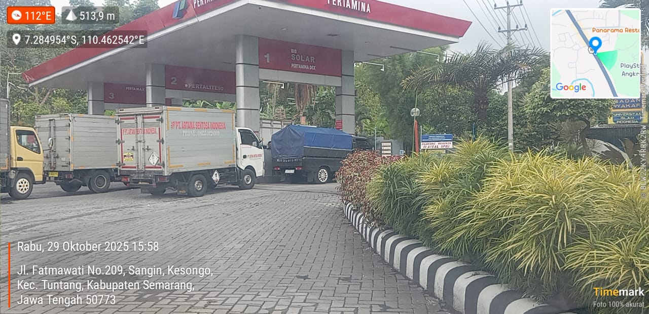 SEMARANG, BUSERJATIM.COM GROUP – Pada Rabu, 29 Oktober 2025, pukul 15:58, tim investigasi media ini menemukan indikasi kuat praktik pengangsuan BBM subsidi jenis solar di sebuah SPBU di Lopait, Kabupaten Semarang. Kecurigaan bermula saat tim mengamati sebuah mobil L300 dengan terpal biru yang gerak-geriknya mencurigakan.