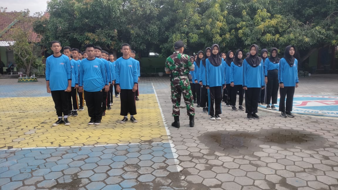 Babinsa Jiwan Beri Pembekalan Dasar Kepemimpinan kepada Siswa MTsN 6 Madiun