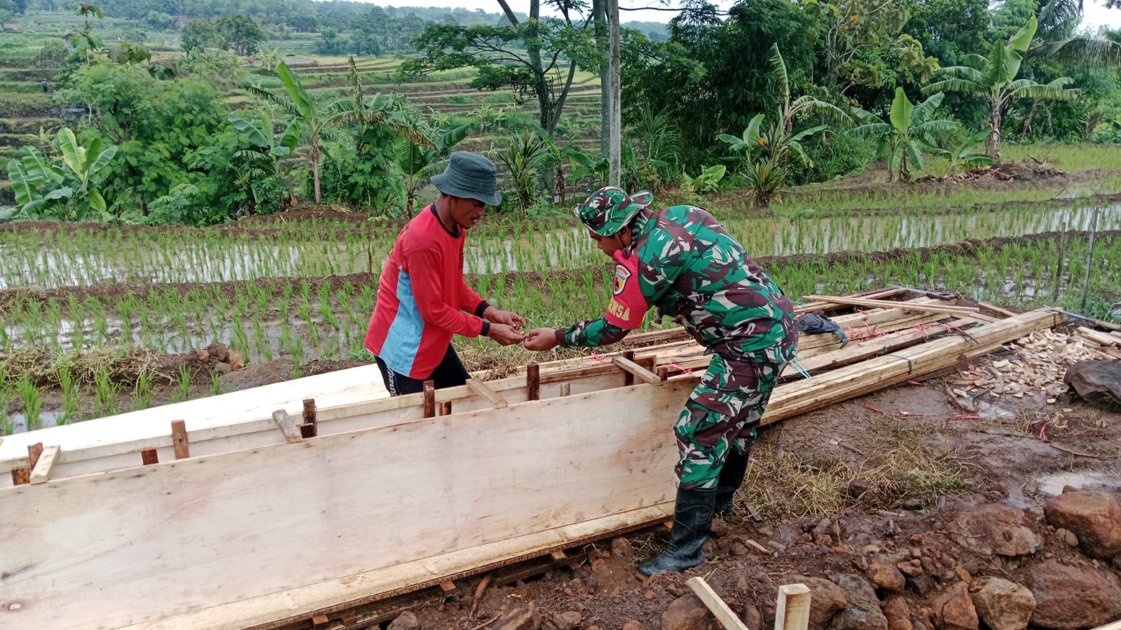 Seperti yang dilakukan Koptu Tria Purwanto salah satu anggota Koramil 0805/08 Jogorogo, Kodim 0805/Ngawi yang aktif membantu petani di wilayahnya dengan semangat membantu pembangunan talud irigasi persawahan yang berada di Desa Ngrayudan Kecamatan Jogorogo, Kabupaten Ngawi). Selasa (4/11/2025).