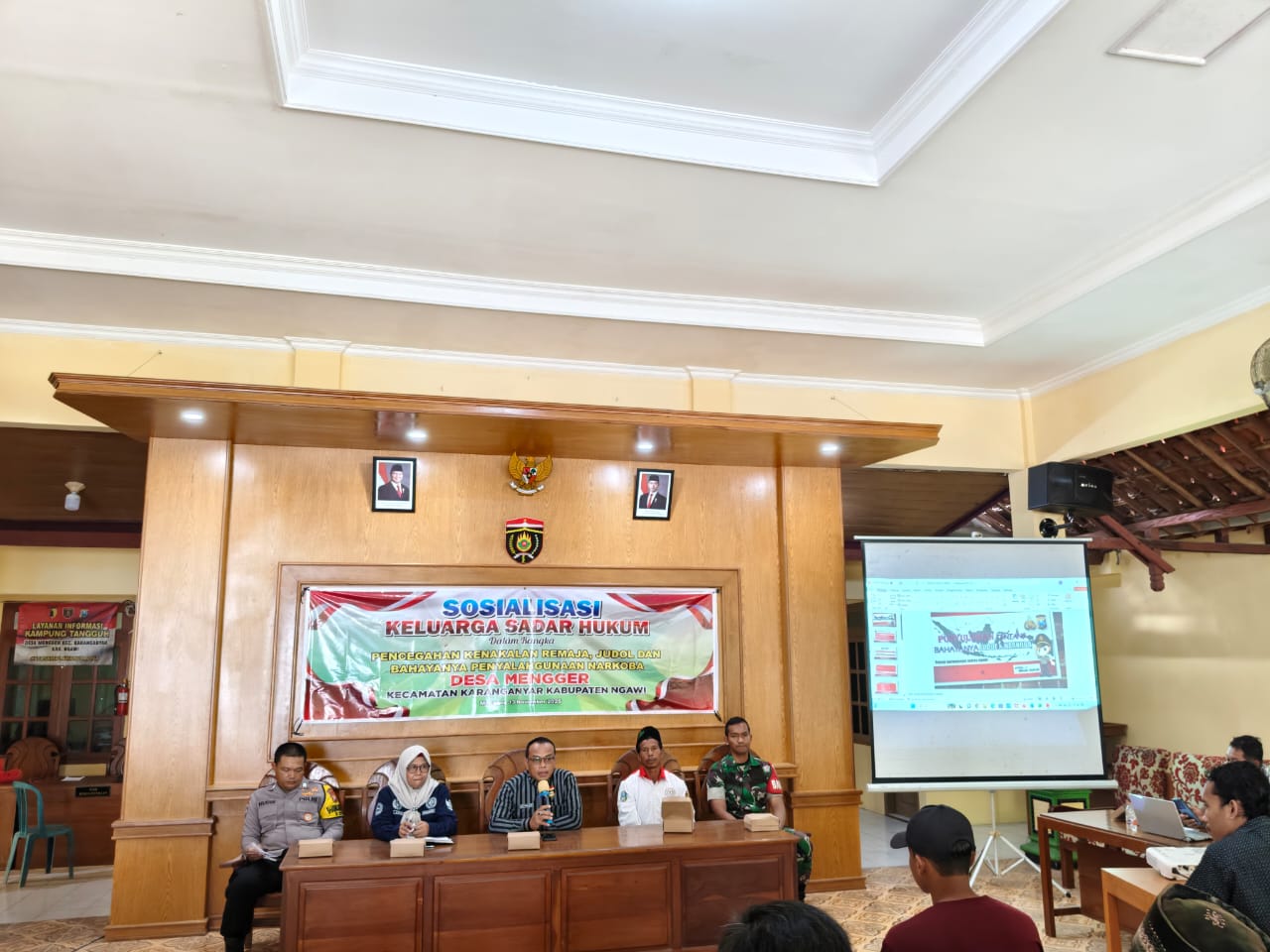 NGAWI, BUSERJATIM.COM GROUP – Upaya pencegahan kenakalan remaja di wilayah Kecamatan Karanganyar terus ditingkatkan. Babinsa Koramil 15/Karanganyar Serda Kukuh Wahyu bersama Bhabinkamtibmas memberikan sosialisasi hukum kepada masyarakat di Balai Desa Mengger, Kecamatan Karanganyar, Kabupaten Ngawi. Kegiatan tersebut turut dihadiri Camat Karanganyar beserta seluruh kepala desa di wilayah kecamatan. Jum’at (14/11/2025).