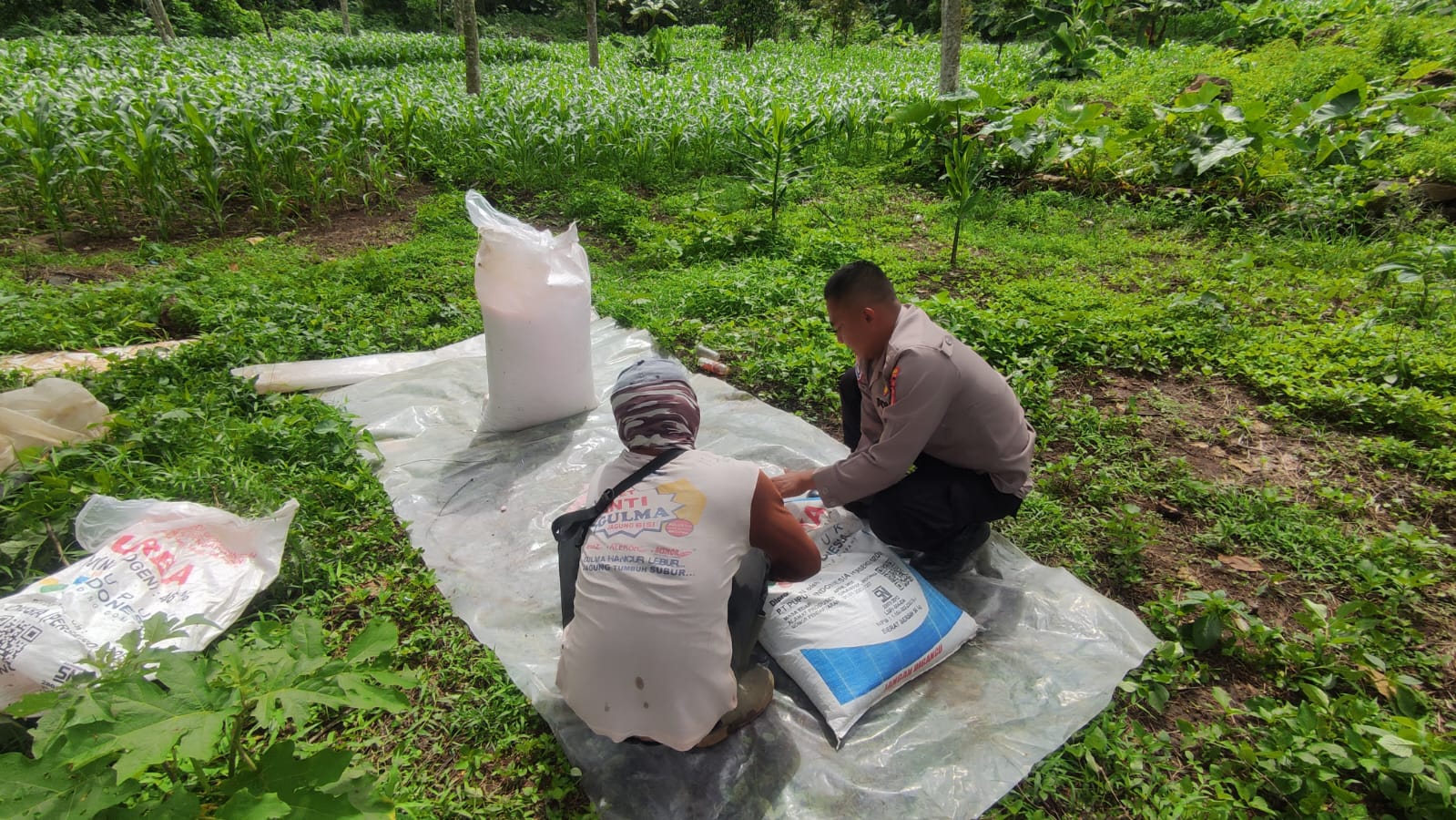 Kehadiran Aipda Pedi Fedillah di area pertanian disambut hangat oleh para petani yang tengah melakukan perawatan jagung. Dalam kegiatan tersebut, ia turut memanggul pupuk, membantu proses pemupukan, serta memberikan motivasi kepada petani agar terus meningkatkan kualitas dan hasil produksi pertanian.