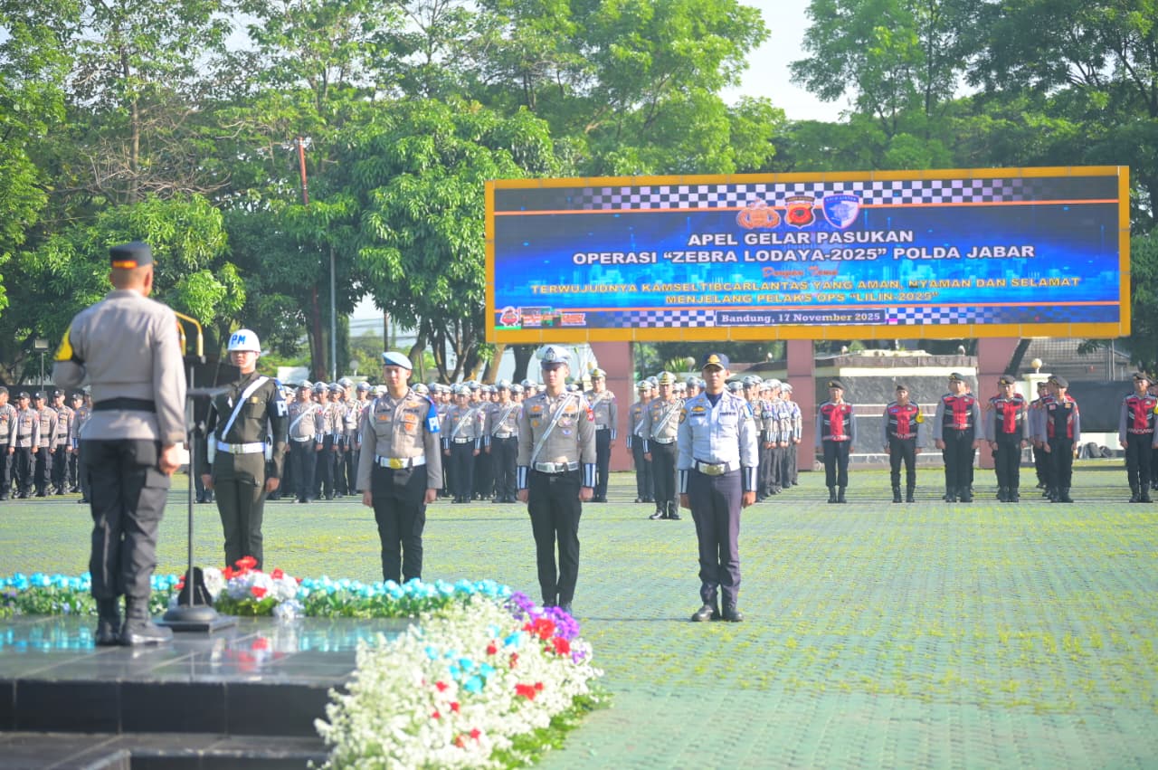 Kepolisian Daerah Jawa Barat (Polda Jabar) resmi menggelar Operasi Kepolisian Kewilayahan “Zebra Lodaya-2025”, yang dimulai pada hari Senin, 17 November 2025. Apel gelar pasukan yang dilaksanakan di Mapolda Jabar bertujuan untuk mengecek kesiapan seluruh personel sebelum pelaksanaan operasi di wilayah hukum Polda Jabar. Operasi ini merupakan upaya Polri, khususnya Polantas, bersama instansi terkait untuk menjaga keamanan, kelancaran arus lalu lintas, serta menurunkan titik kemacetan, pelanggaran, dan kecelakaan lalu lintas, sejalan dengan amanat Undang- Undang Nomor 22 Tahun 2009 tentang Lalu Lintas dan Angkutan Jalan.