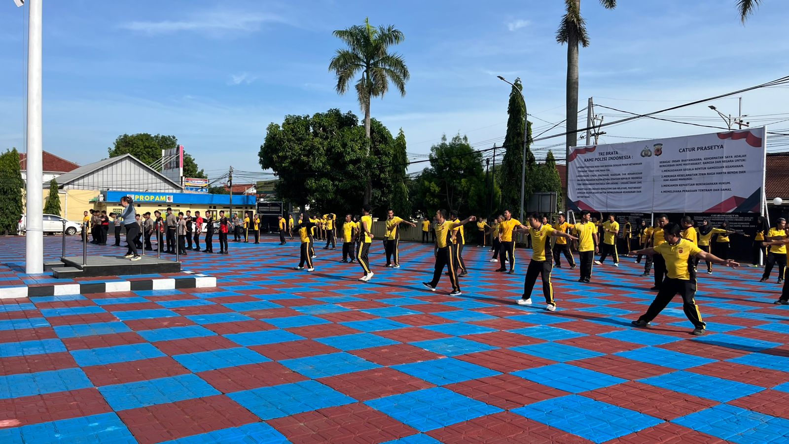 Kegiatan senam berlangsung dalam suasana ceria dan penuh antusiasme, diakhiri dengan ramah tamah serta pesan-pesan motivasi untuk seluruh personel.