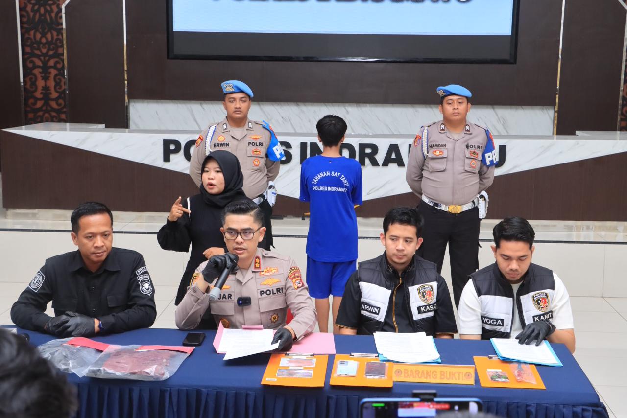 Pengungkapan kasus tersebut disampaikan dalam kegiatan press release yang dipimpin Kapolres Indramayu AKBP Mochamad Fajar Gemilang, S.I.K,. M.H., M.I.K. didampingi Kasat Reskrim Polres Indramayu AKP Muchammad Arwin Bachar, S.T.K., S.I.K., serta Kasi Humas Polres Indramayu AKP Tarno, S.H. di Aula Atmaniwedhana, Mako Polres Indramayu, Kamis (4/12/2025).