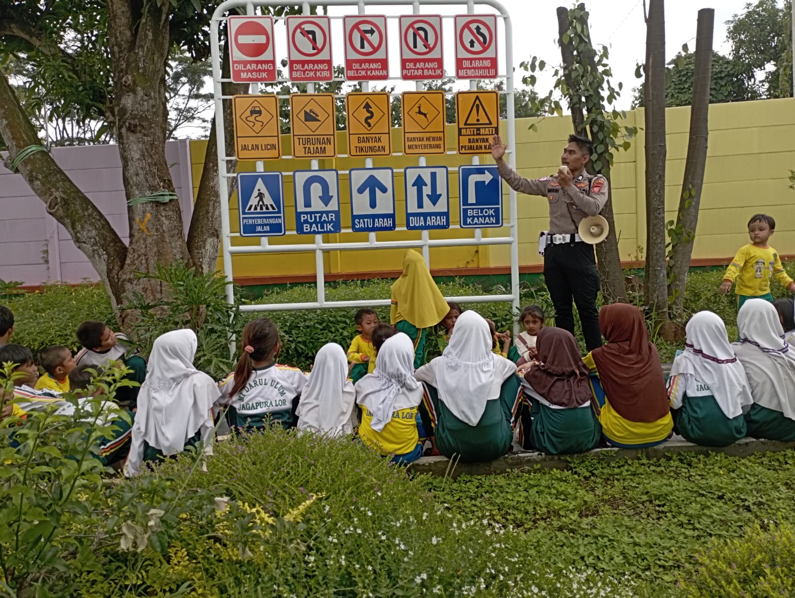 Majalengka – Unit Dikyasa Satlantas melaksanakan kegiatan Polisi Sahabat Anak (Polsanak) melalui sosialisasi dan edukasi tentang pengenalan rambu-rambu lalu lintas kepada siswa-siswi MI Daarul Ulum Cirebon. Kegiatan ini berlangsung pada Kamis (11/12/2025) di Taman Lalu Lintas Obyek Wisata Keliling Dunia.