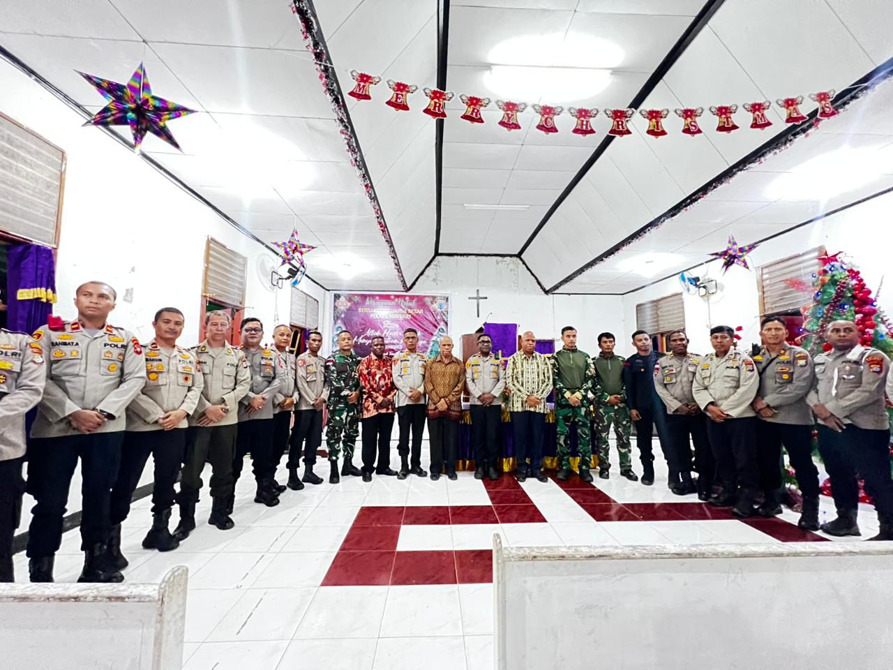 MAYBRAT, BUSERJATIM.COM GROUP- Keluarga Besar Polres Maybrat Polda Papua Barat Daya menggelar Ibadah Perayaan Natal oikumene Bersama di Gereja Kristen Injili (GKI) Sion Kumurkek, Distrik Aifat, Kabupaten Maybrat. Rabu malam (10/12/2025).