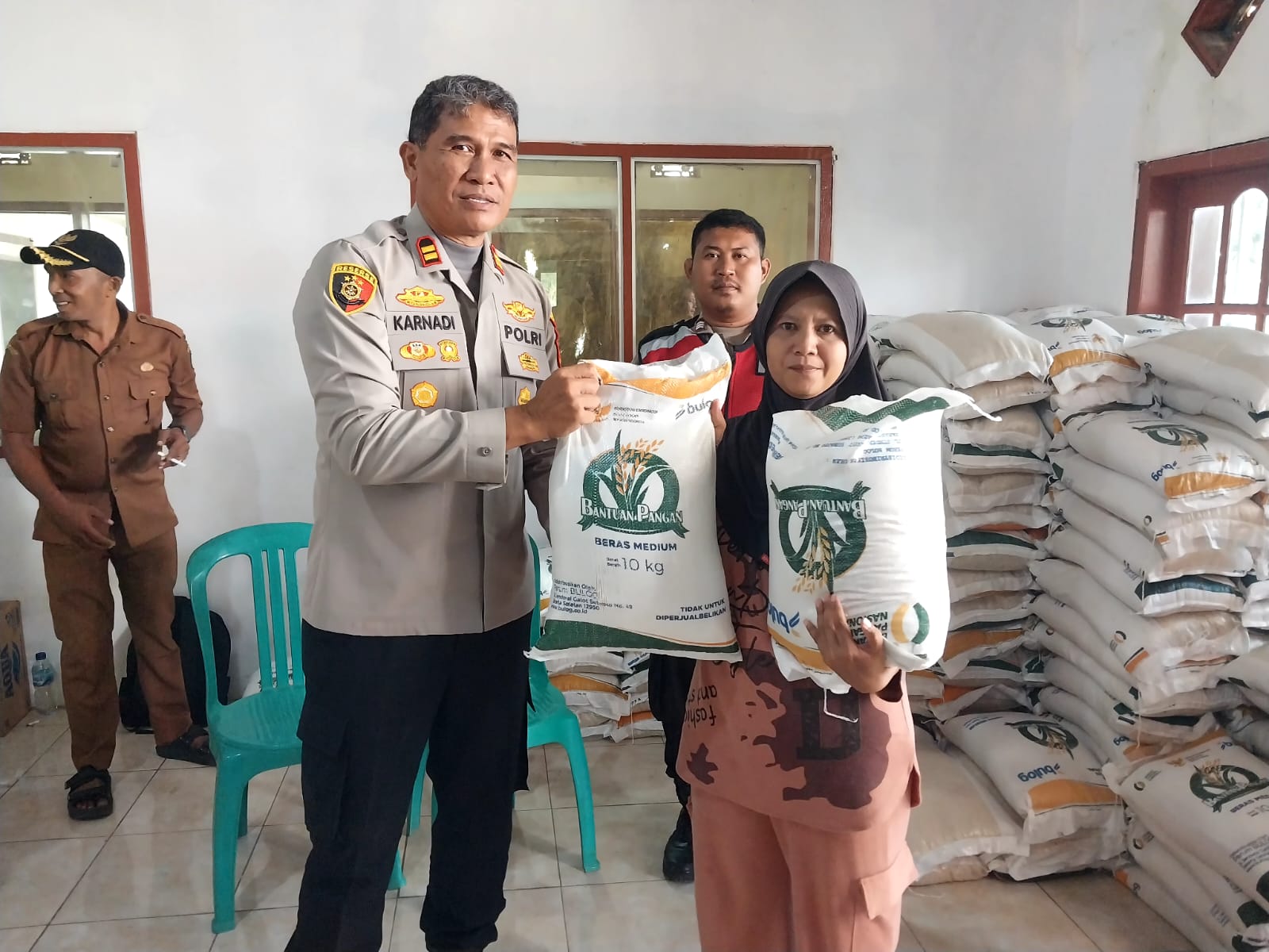 “Pengamanan ini kami lakukan agar penyaluran bantuan pangan dapat berjalan dengan tertib, tepat sasaran, serta menghindari potensi gangguan kamtibmas. Kehadiran Polri bersama TNI diharapkan memberi rasa aman dan nyaman bagi masyarakat penerima bantuan,” ujar IPTU H. Karnadi.