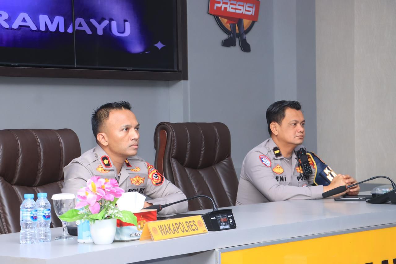 Di Polres Indramayu, kegiatan dihadiri Kapolres Indramayu AKBP Mochamad Fajar Gemilang, S.I.K., M.H., M.I.K., yang diwakili oleh Wakapolres Indramayu KOMPOL Tahir Muhiddin, S.E., S.I.K., M.M., CPHR, serta diikuti para Pejabat Utama (PJU) dan perwira jajaran Polres Indramayu.