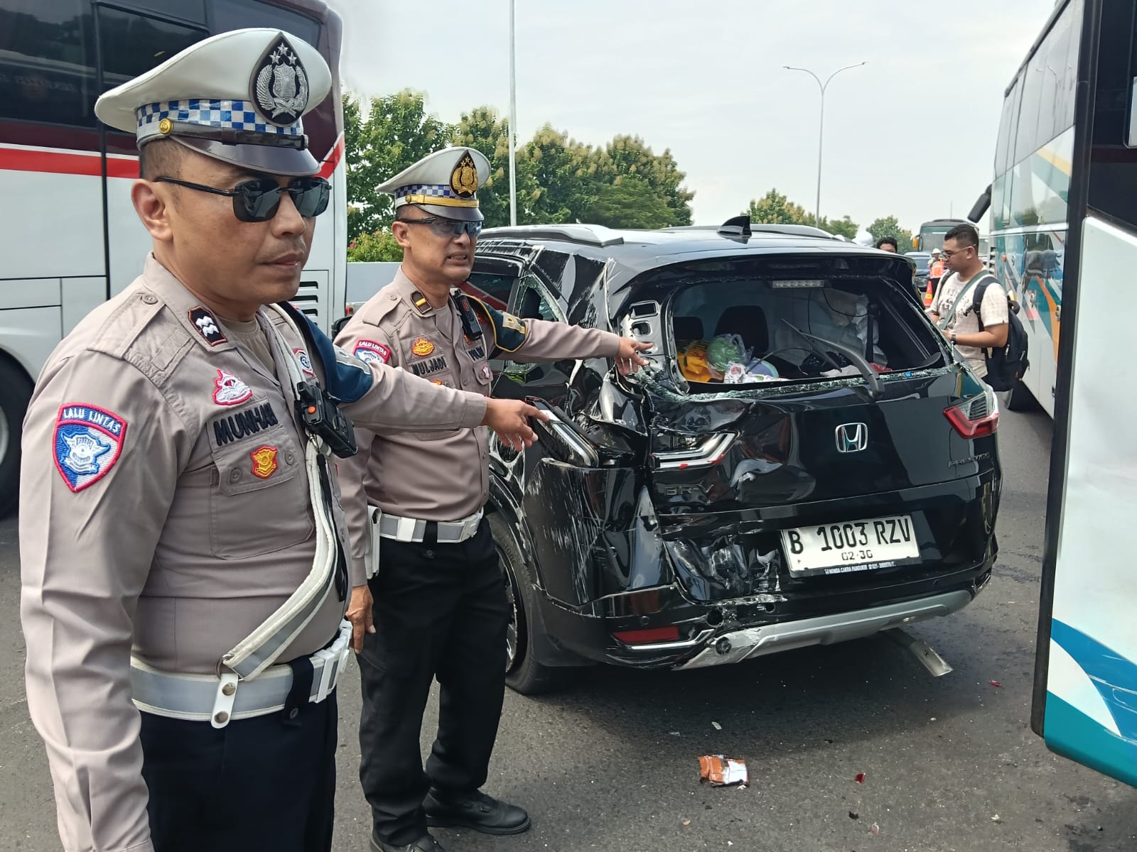 “Benar, kecelakaan bermula saat sebuah minibus Honda BR-V bernomor polisi B 1003 RZV yang dikemudikan Aditya Wahyu Kusuma mengalami perlambatan akibat kondisi lalu lintas di jalur tersebut. Namun, kendaraan tersebut kemudian ditabrak dari arah belakang oleh Bus Garuda Mas bernomor polisi B 7260 UGA yang dikemudikan Fatawi,” kata AKP Rizky Aulia Pratama.