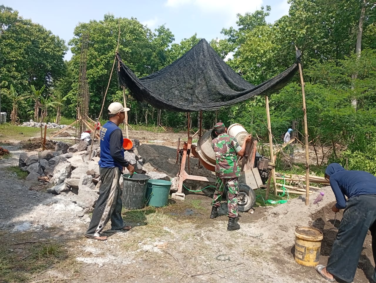 NGAWI, BUSERJATIM.COM GROUP – Babinsa Koramil Mantingan Kodim 0805 Ngawi, Sertu Irmadi, bersama masyarakat melaksanakan kegiatan gotong royong kerja bakti pembangunan mushola di Desa Pengkol, Kecamatan Mantingan, Kabupaten Ngawi, Minggu (4/1/2026). Kegiatan ini menjadi wujud kepedulian TNI terhadap lingkungan sekaligus mempererat kebersamaan dengan warga.