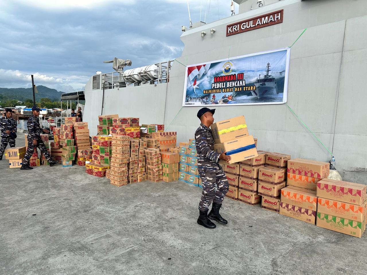 Panglima Komando Armada III Laksamana Muda TNI Dato Rusman Sutan Nurdin menyampaikan bahwa dukungan tersebut dilaksanakan melalui operasi bantuan kemanusiaan Gugus Tempur Laut Koarmada III, dengan mengerahkan KRI Gulamah-869 untuk mendukung distribusi bantuan.