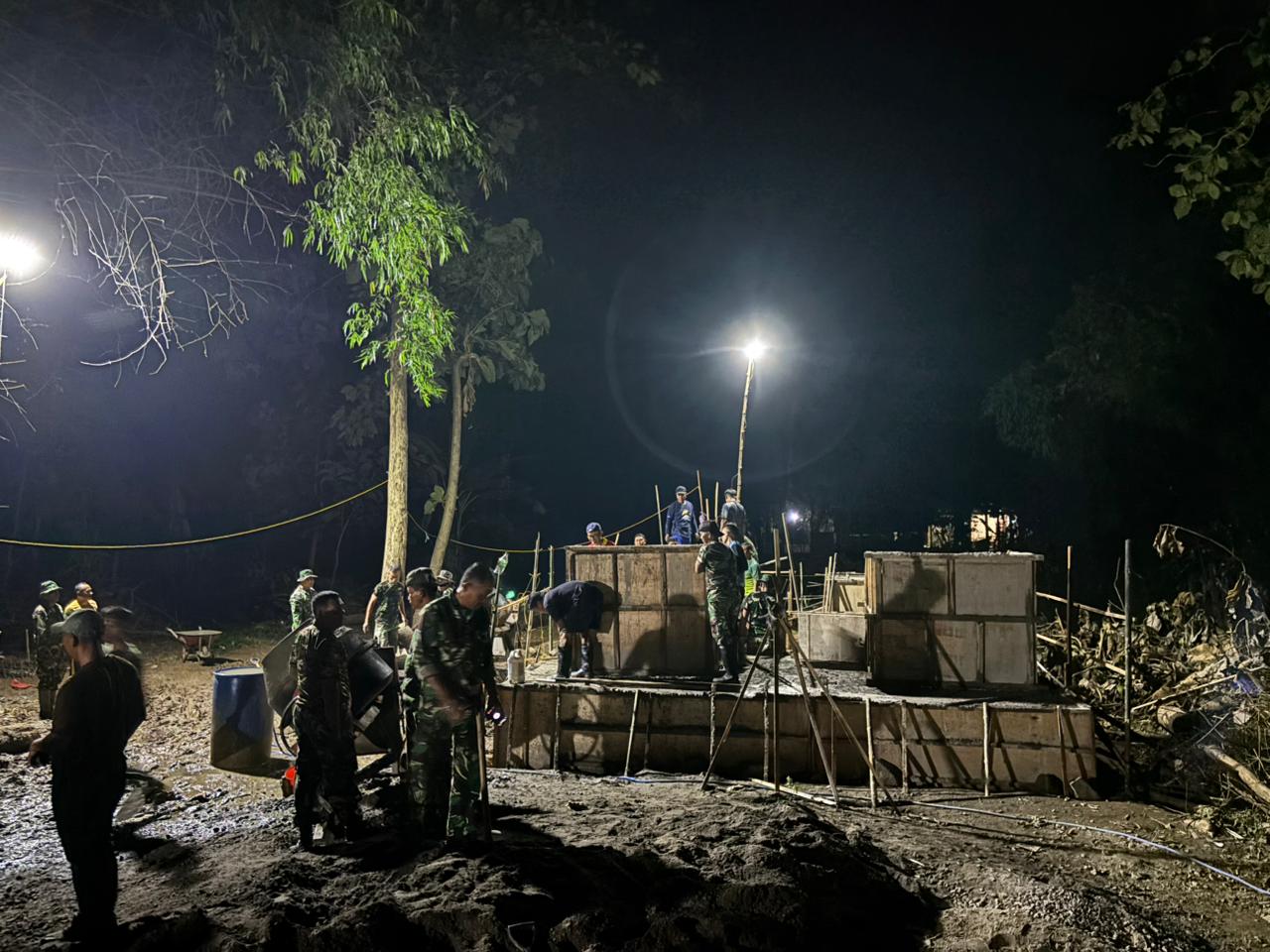 Kerja Lembur Wujud Nyata TNI dan Masyarakat Antusias Dalam Menyukseskan Pembangunan Jembatan Perintis Garuda di Ponorogo