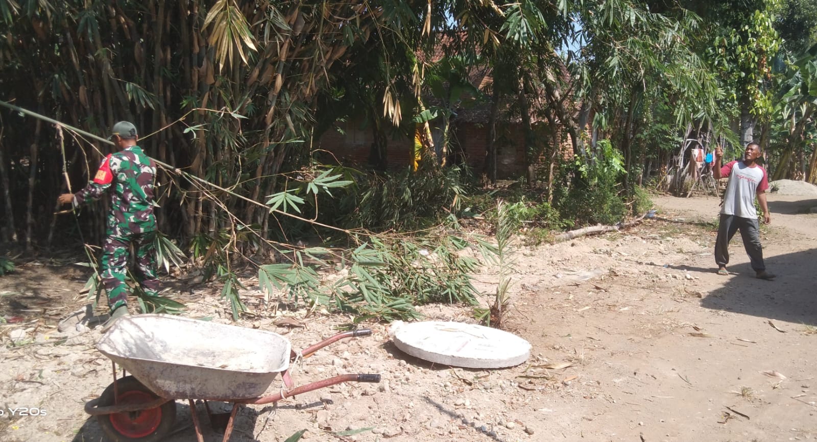 Seperti hari ini dilakukan Sertu Abdul Rozy anggota Koramil Tipe B 0802/16 Jetis, Kodim 0802/Ponorogo yang sehari hari bertugas menjadi Babinsa Desa Karanggebang Kecamatan Jetis Kabupaten Ponorogo yang hari ini membantu warga yang sedang melaksanakan kerja bakti.